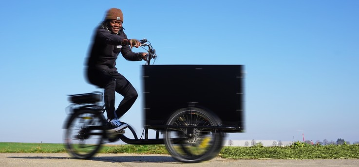 „Da das Solarpanel auf dem Transportboxdeckel montiert ist, können Nutzer den Winkel zur Sonne für eine bessere Ladeleistung optimal einstellen“, verdeutlicht Jürgen Effner. Dabei ist das robuste 66-Kilo-Cargobike nicht nur technisch gut ausgerüstet. Insgesamt können mit dem Lastenfahrrad über 170 Kilo verteilt auf Gepäckträger und die 510 x 720 mm große Transportbox bewegt werden.