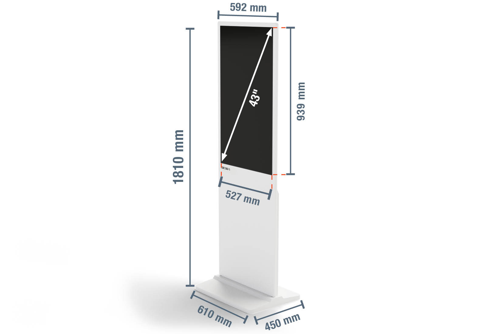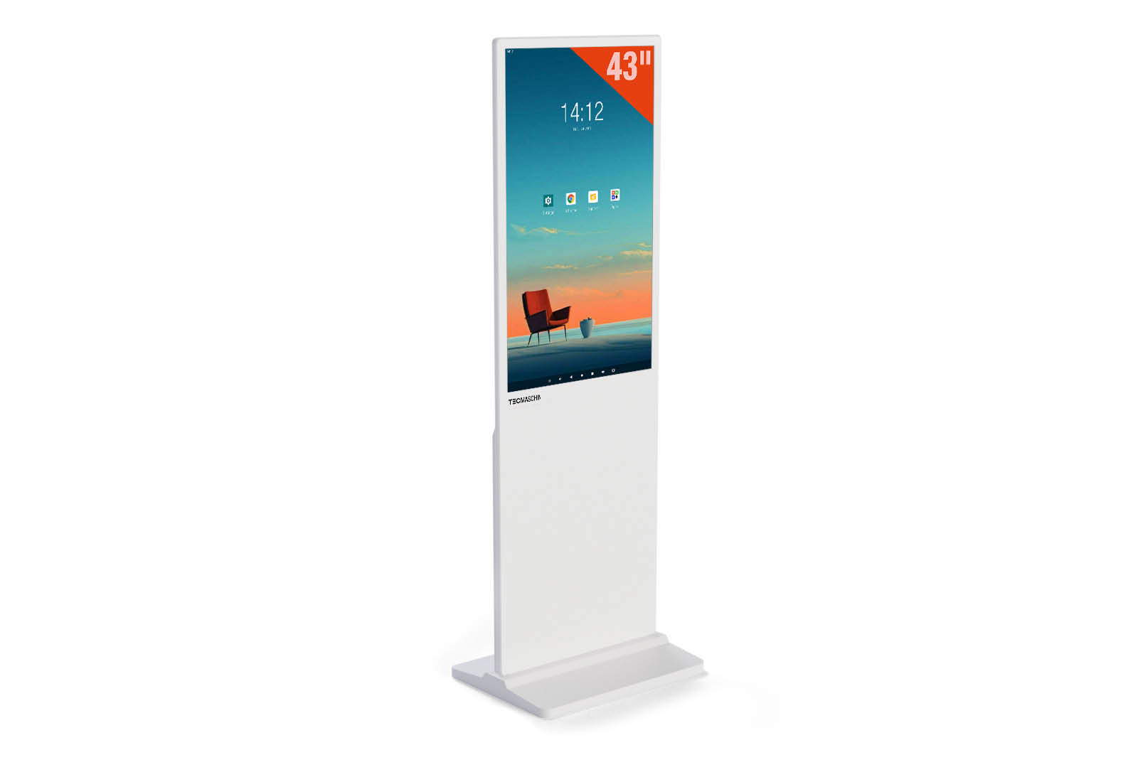 • 1 x Digitaler Kundenstopper DKS-LED43, 43 in Display, Android 11, Weiß, 610 mm x 450 mm x 1.810 mm, TecMaschin