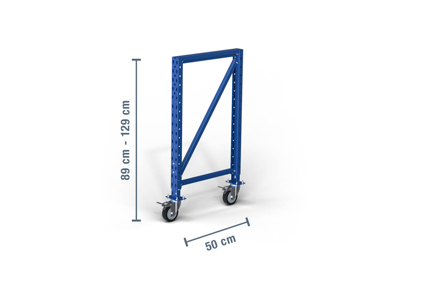 890 - 1.290 mm Ständer / höhenverstellbar / fahrbar für Packtisch / Lagerregal LR2000 / 50 cm tief