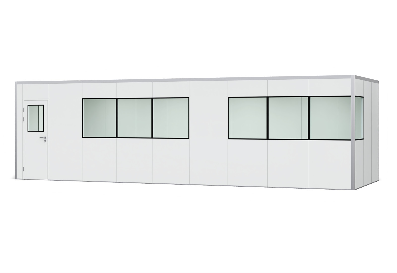 Hallenbüro Meisterbüro PREFAB-27, 8 Fenster, 1 Tür (15 Wand-Paneele, 9 Decken-Paneele)