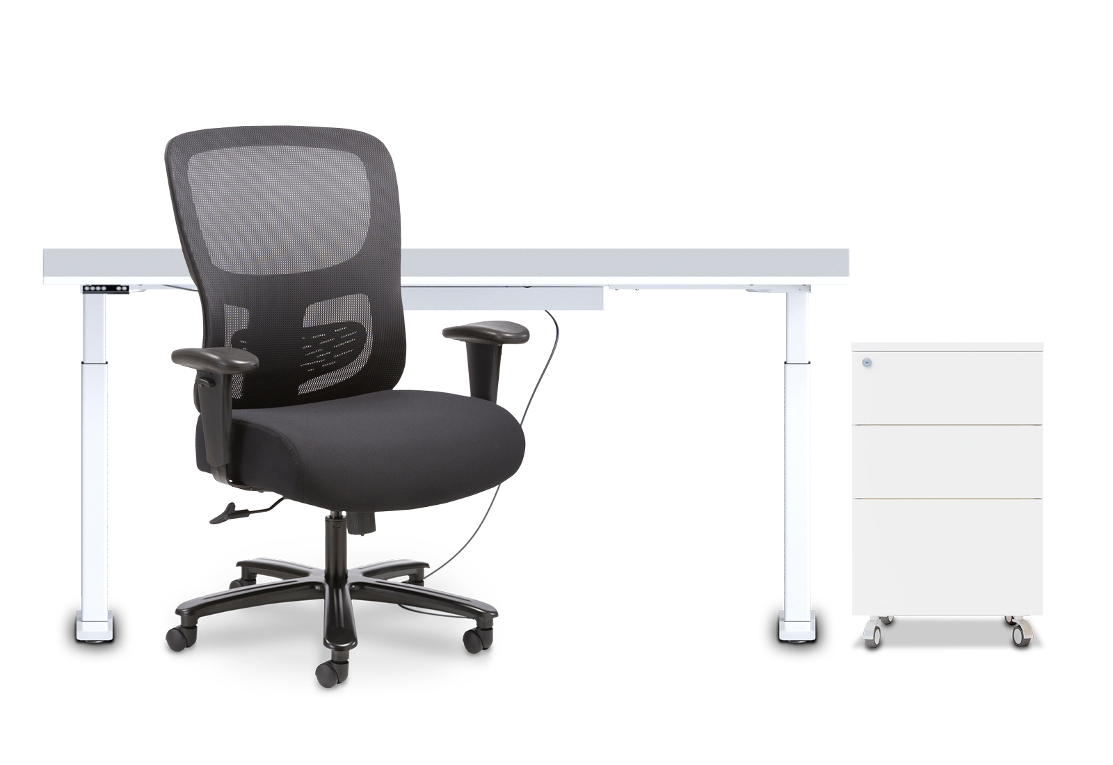 Büromöbel-Set: XXL Bürostuhl TINA, höhenverstellbarer Schreibtisch MILLA200 und Rollcontainer FRIDA von TOPREGAL