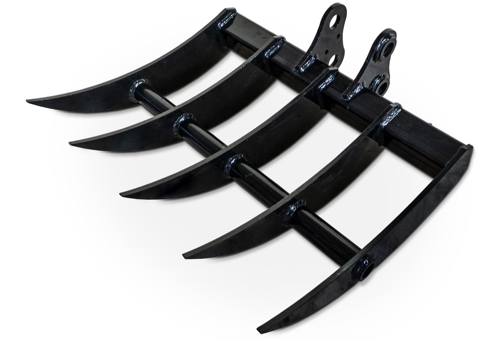 Mit dem Hydraulikhammer können Sie Steine schnell und effizient zerkleinern. Hierzu erhalten Sie noch eine Gasflasche und zusätzliche Hydraulikschläuche, um den Hammer anschließen und steuern zu können. Mit Rechengabel, der größeren Baggerschaufel und dem Greifer können Sie auch andere Gegenstände anheben, bzw. auf Untergrundgegebenheiten reagieren. Mit Hilfe des Erdbohrers lassen sich zudem schnell kerzengerade Löcher in das Erdreich bohren. Zu beachten ist, dass dieser ausschließlich für Erde geeignet ist und nicht für Gestein.