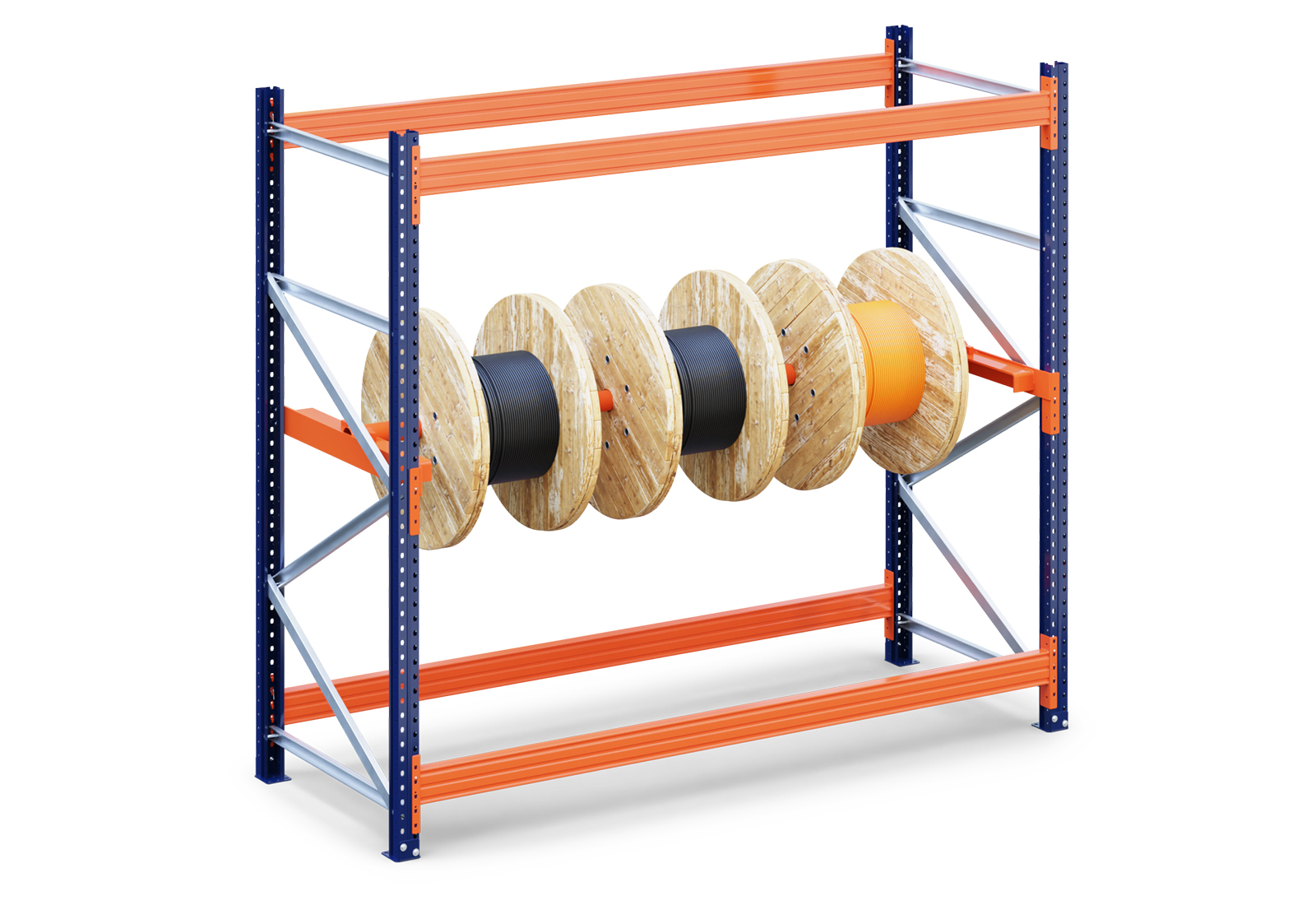 2,8 m Kabeltrommelregal KTR9000 / 110 cm tief / 2,5 m hoch / 1 x Kabeltrommelebene