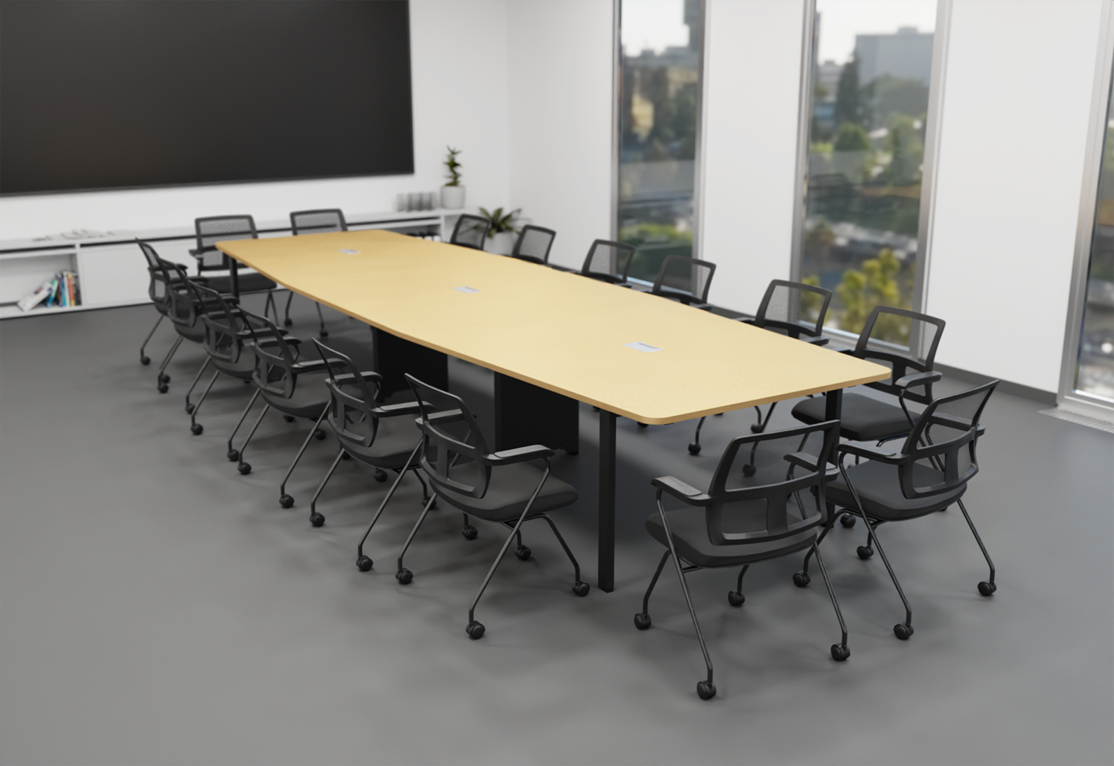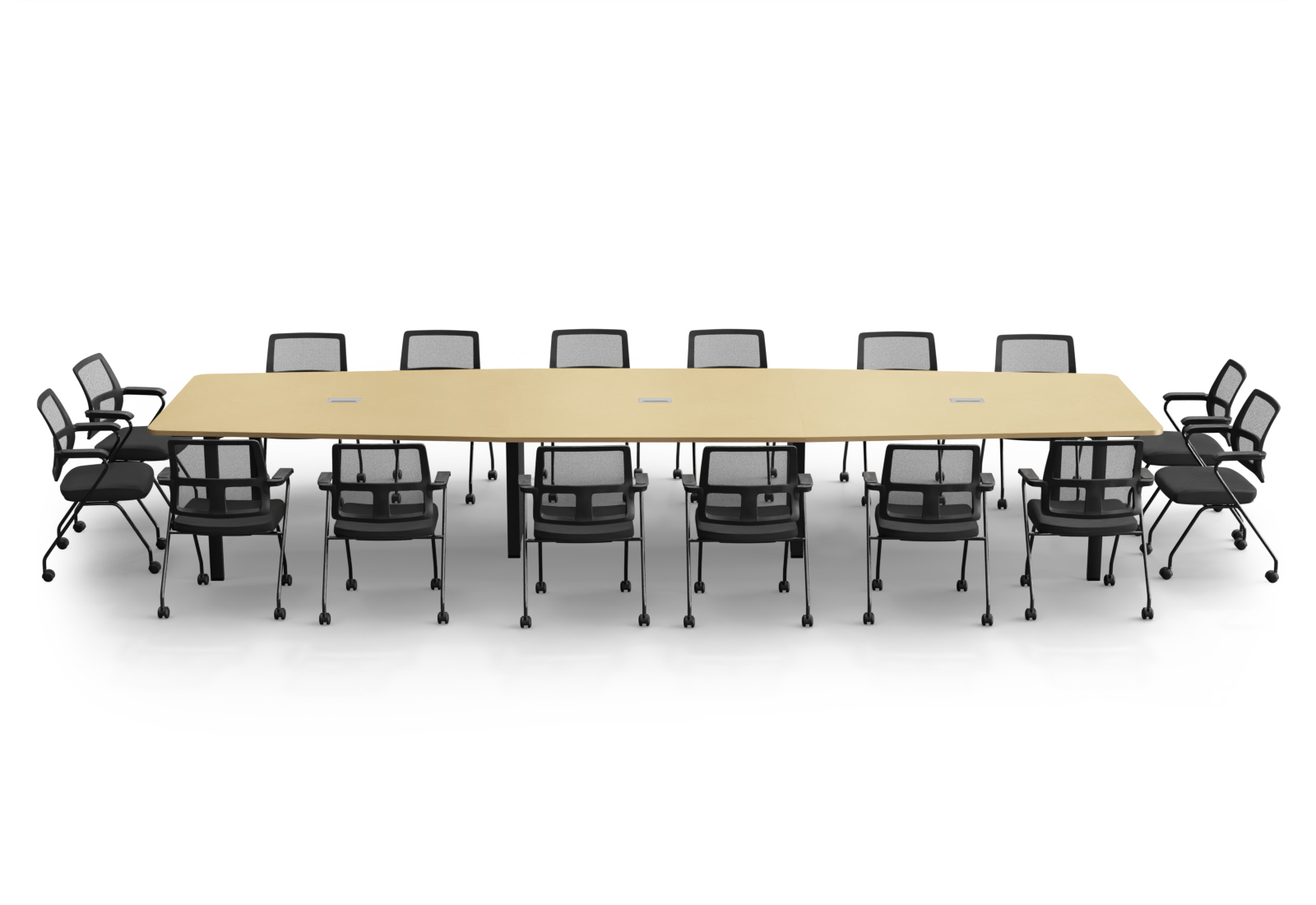 Konferenztisch ELLA480 Beige mit Kabelkanal + 16 Stühle EMMA