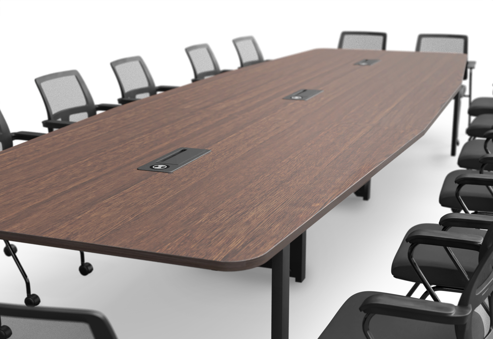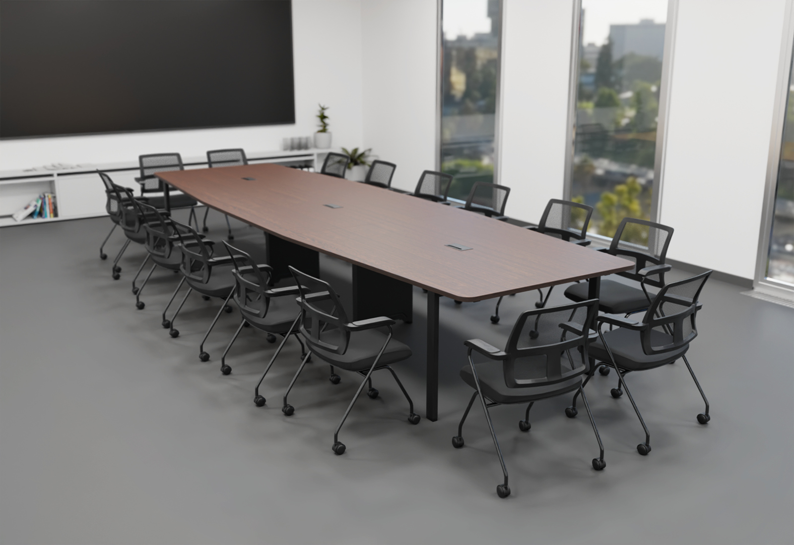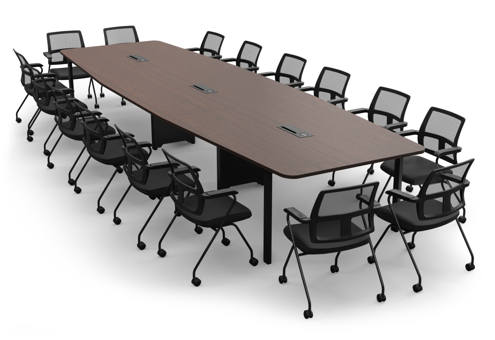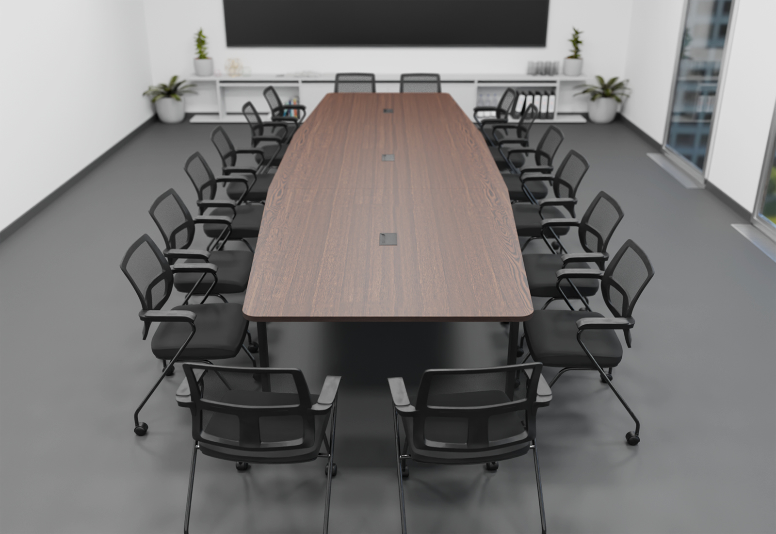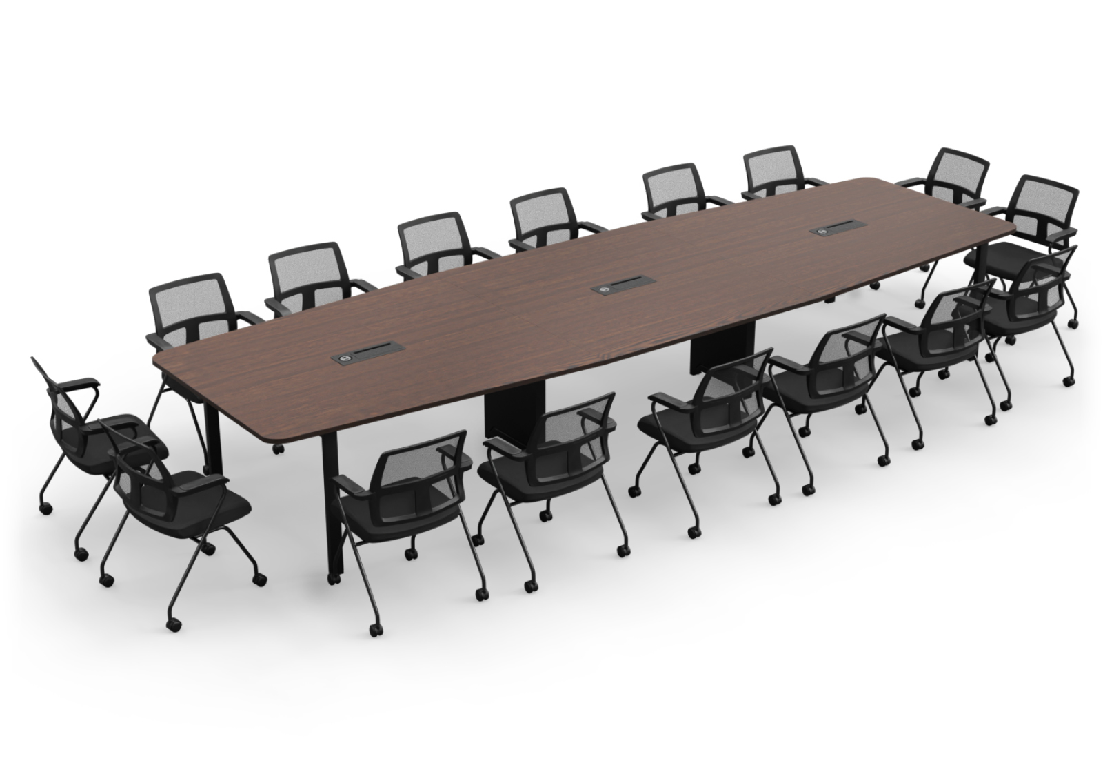 Konferenztisch ELLA480i Dunkel mit Induktionsladestation + 16 Stühle EMMA