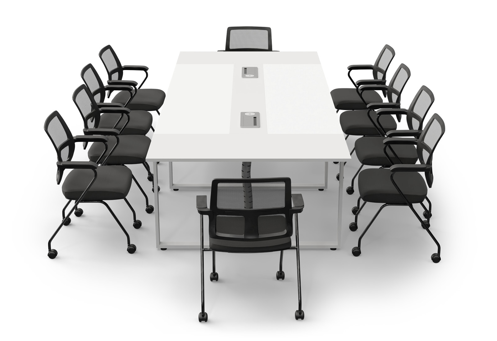 Konferenztisch-Set ANJA280i in Lichtgrau-Weiß mit Induktionsladestation + 10 Stühle EMMA