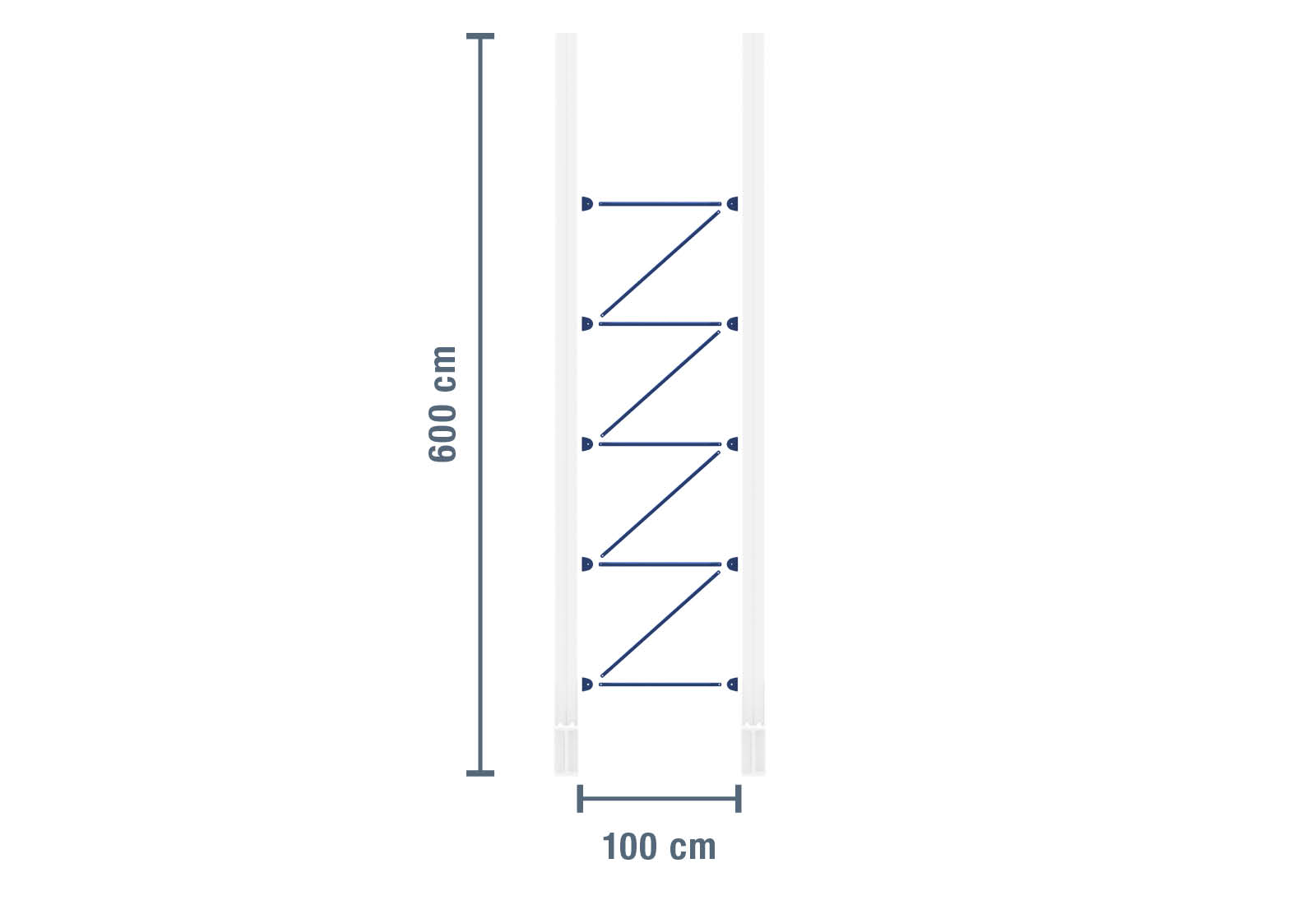Diese Kragarmregal-Verstrebung zeichnet sich durch ihre robuste Bauweise aus und dient der Verbindung von zwei gleich hohen 6.000 mm Kragarmregal-Ständern, um ein funktionstüchtiges Regalfeld aufzubauen.