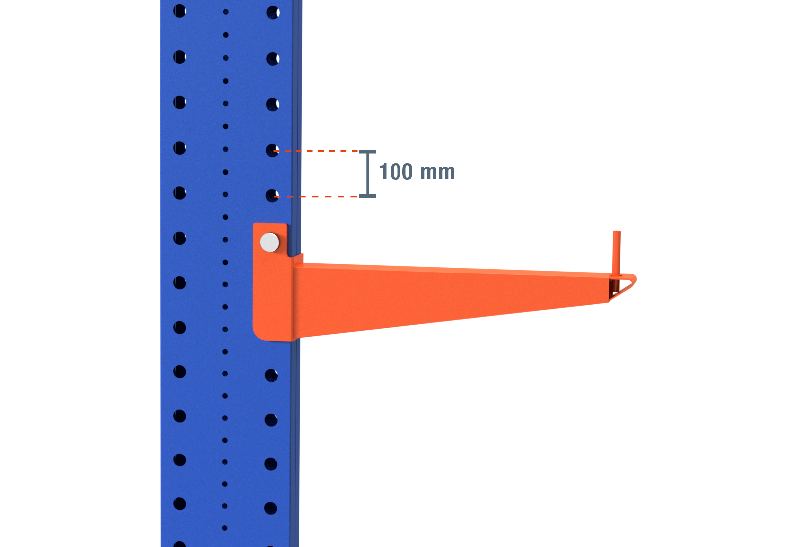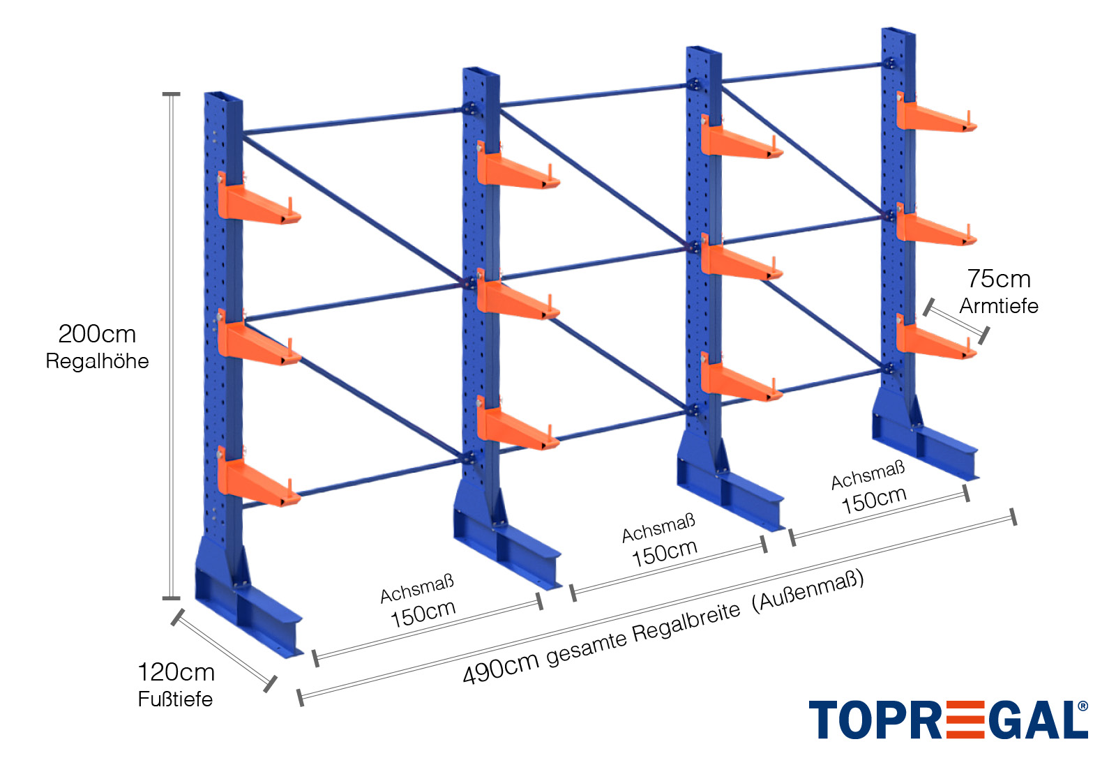 Als Achsmaß wird das Innenmaß zwischen zwei Regalständer bezeichnet. Je nach Kragarmtyp bieten wir Ihnen diese Felder in 120 cm (KR2500) und in 100 cm / 150 cm (KR3000 / KR6000) an.