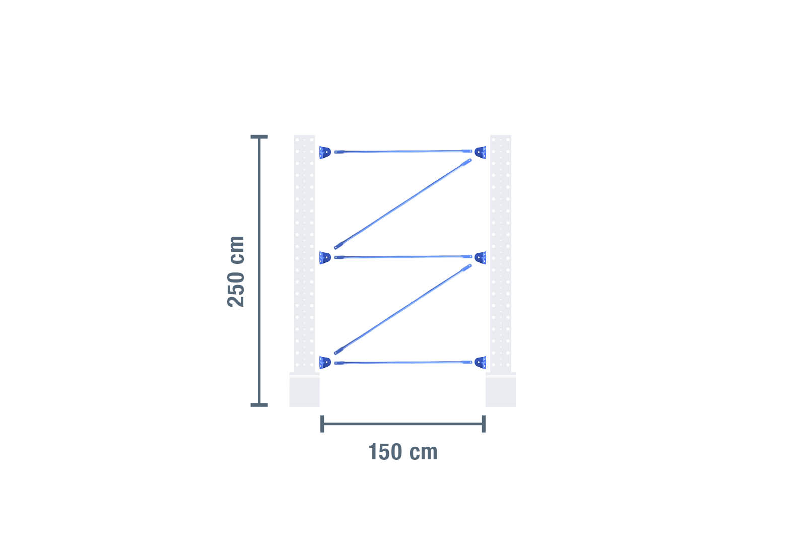 Diese Kragarmregal-Verstrebung zeichnet sich durch ihre robuste Bauweise aus und dient der Verbindung von zwei gleich hohen 2.500 mm Kragarmregal-Ständern, um ein funktionstüchtiges Regalfeld aufzubauen.
