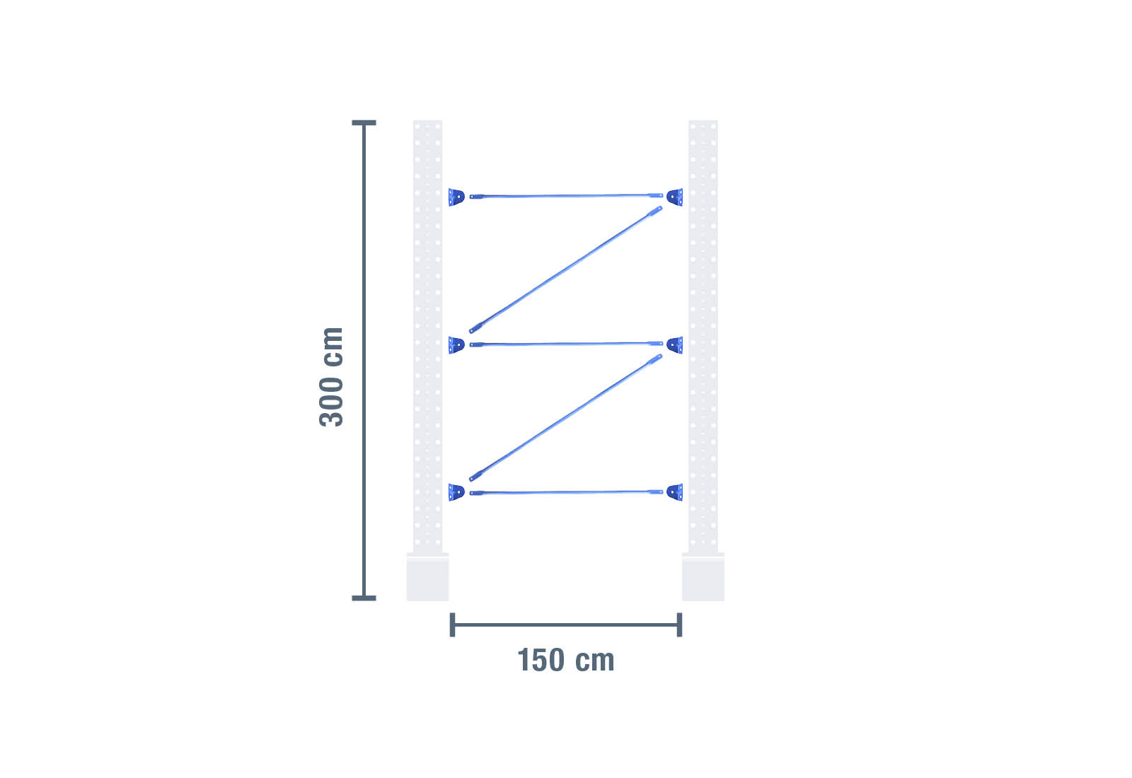 Diese Kragarmregal-Verstrebung zeichnet sich durch ihre robuste Bauweise aus und dient der Verbindung von zwei gleich hohen 3.000 mm Kragarmregal-Ständern, um ein funktionstüchtiges Regalfeld aufzubauen.