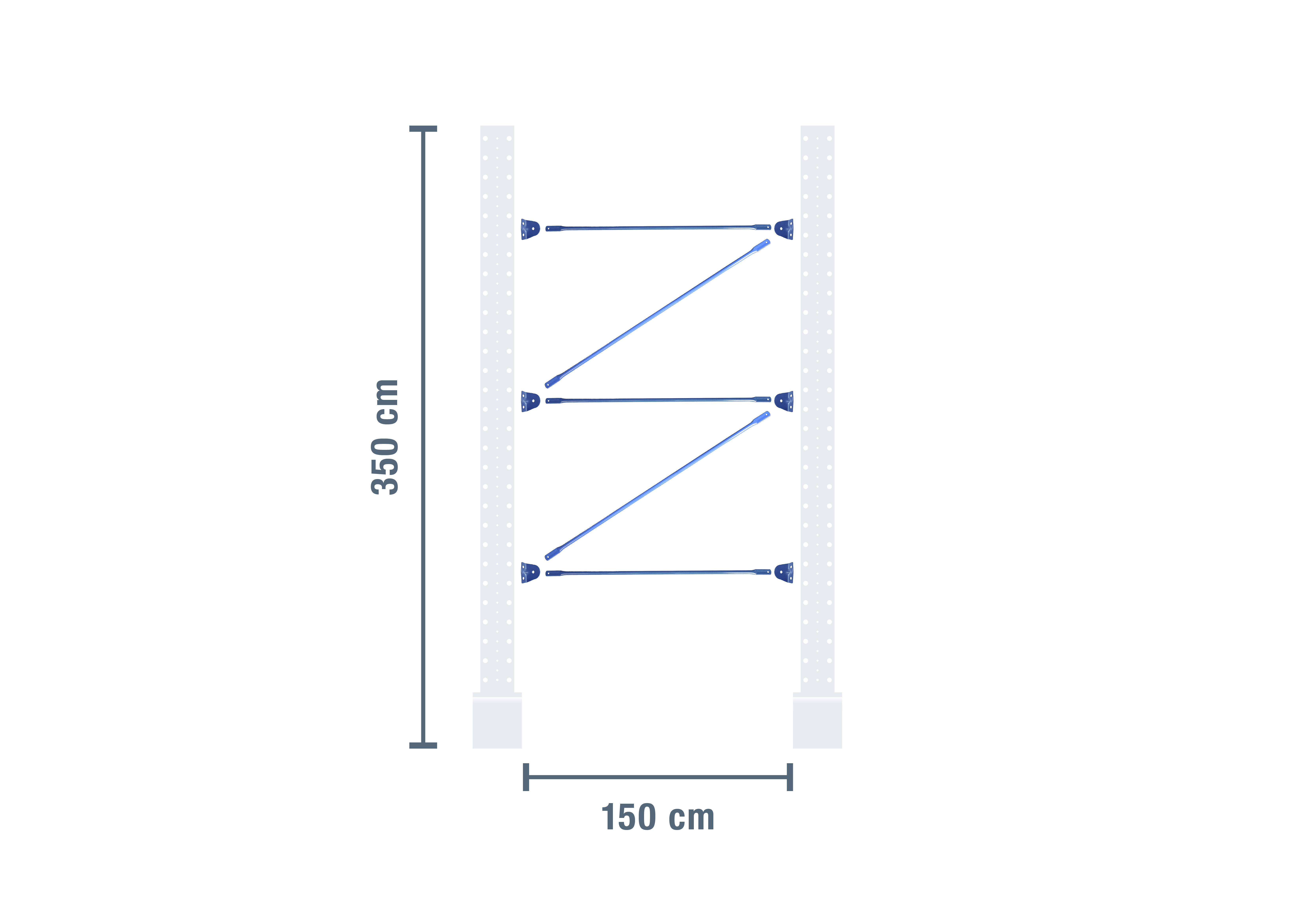 Diese Kragarmregal-Verstrebung zeichnet sich durch ihre robuste Bauweise aus und dient der Verbindung von zwei gleich hohen 3.500 mm Kragarmregal-Ständern, um ein funktionstüchtiges Regalfeld aufzubauen.