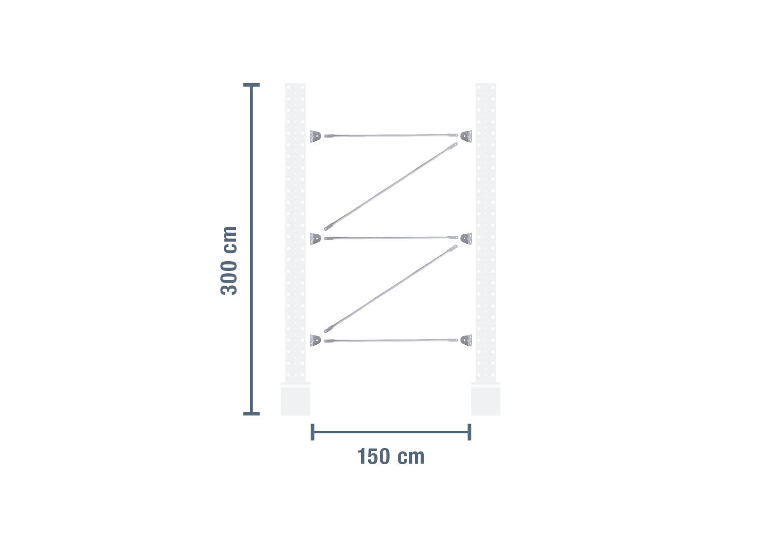 Diese Kragarmregal-Verstrebung zeichnet sich durch ihre robuste Bauweise aus und dient der Verbindung von zwei gleich hohen 3.000 mm Kragarmregal-Ständern, um ein funktionstüchtiges Regalfeld aufzubauen.