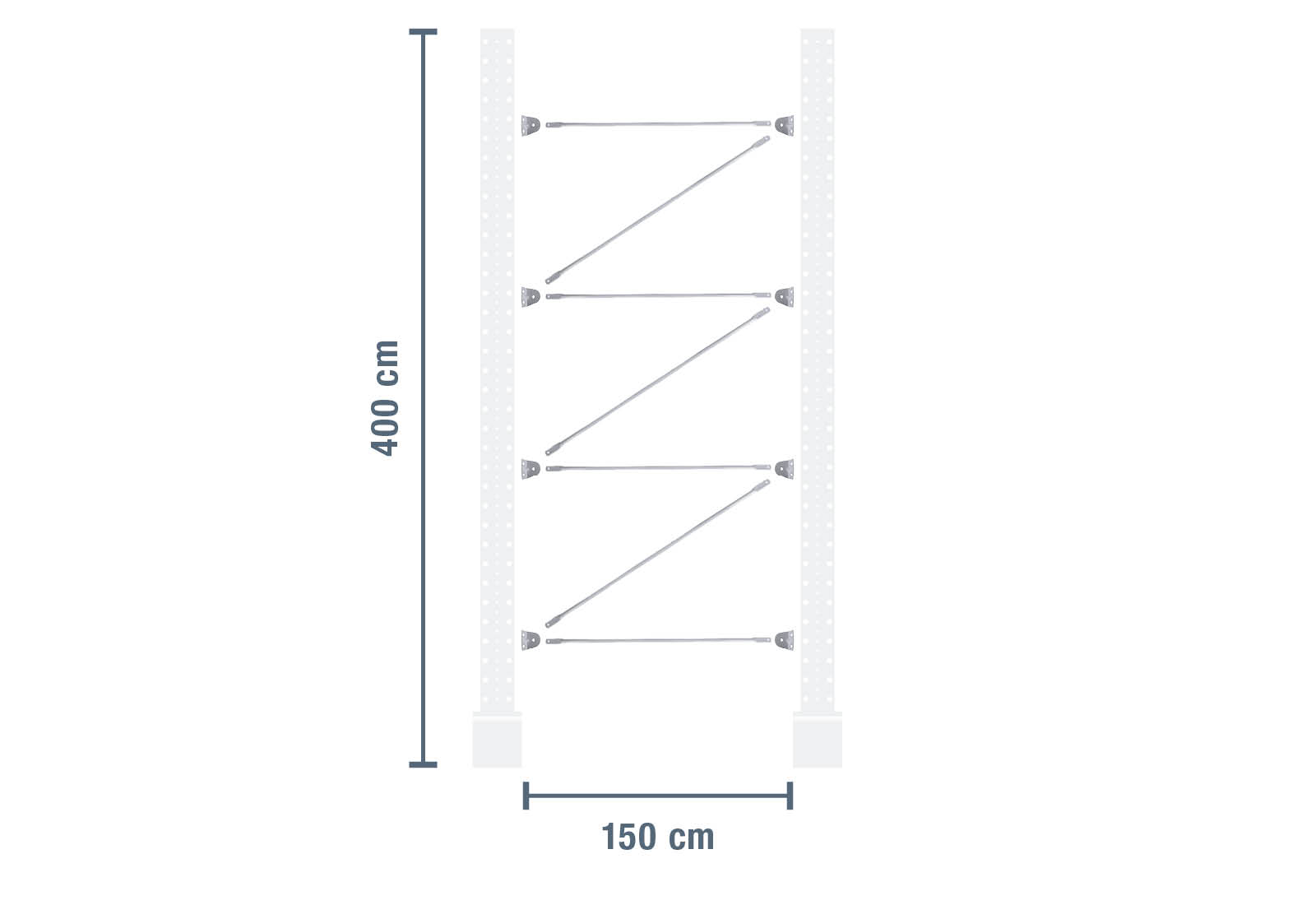 Diese Kragarmregal-Verstrebung zeichnet sich durch ihre robuste Bauweise aus und dient der Verbindung von zwei gleich hohen 4.000 mm Kragarmregal-Ständern, um ein funktionstüchtiges Regalfeld aufzubauen.