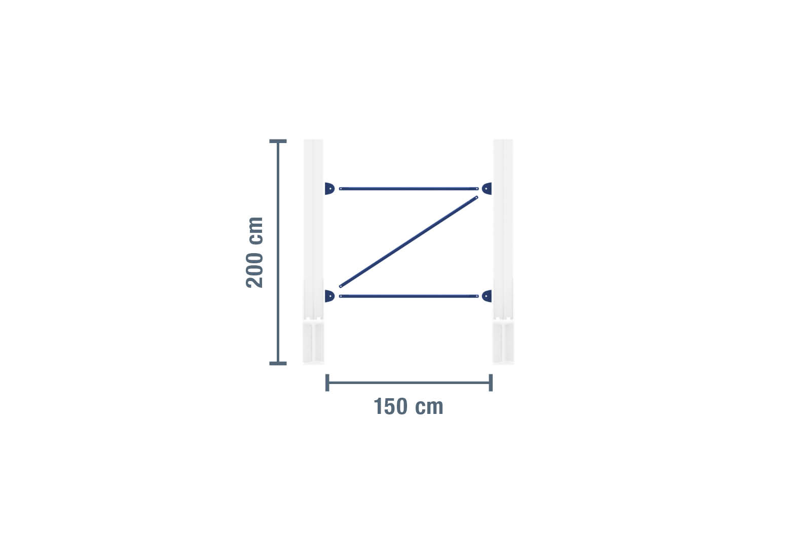 Diese Kragarmregal-Verstrebung zeichnet sich durch ihre robuste Bauweise aus und dient der Verbindung von zwei gleich hohen 2.000 mm Kragarmregal-Ständern, um ein funktionstüchtiges Regalfeld aufzubauen.
