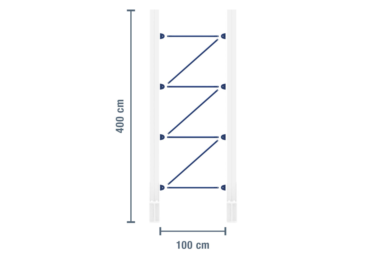Diese Kragarmregal-Verstrebung zeichnet sich durch ihre robuste Bauweise aus und dient der Verbindung von zwei gleich hohen 4.000 mm Kragarmregal-Ständern, um ein funktionstüchtiges Regalfeld aufzubauen.