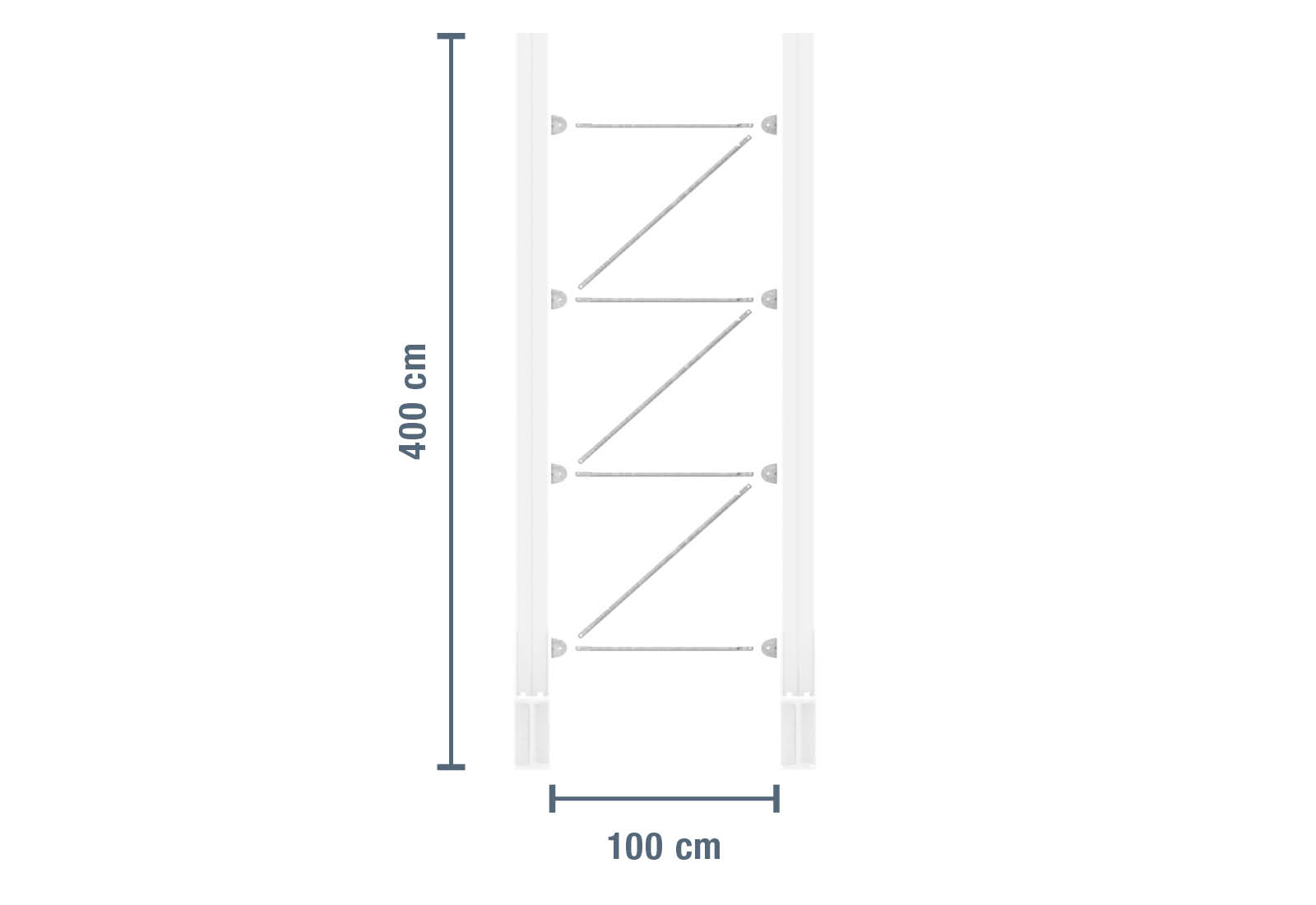 Diese Kragarmregal-Verstrebung zeichnet sich durch ihre robuste Bauweise aus und dient der Verbindung von zwei gleich hohen 4.000 mm Kragarmregal-Ständern, um ein funktionstüchtiges Regalfeld aufzubauen.