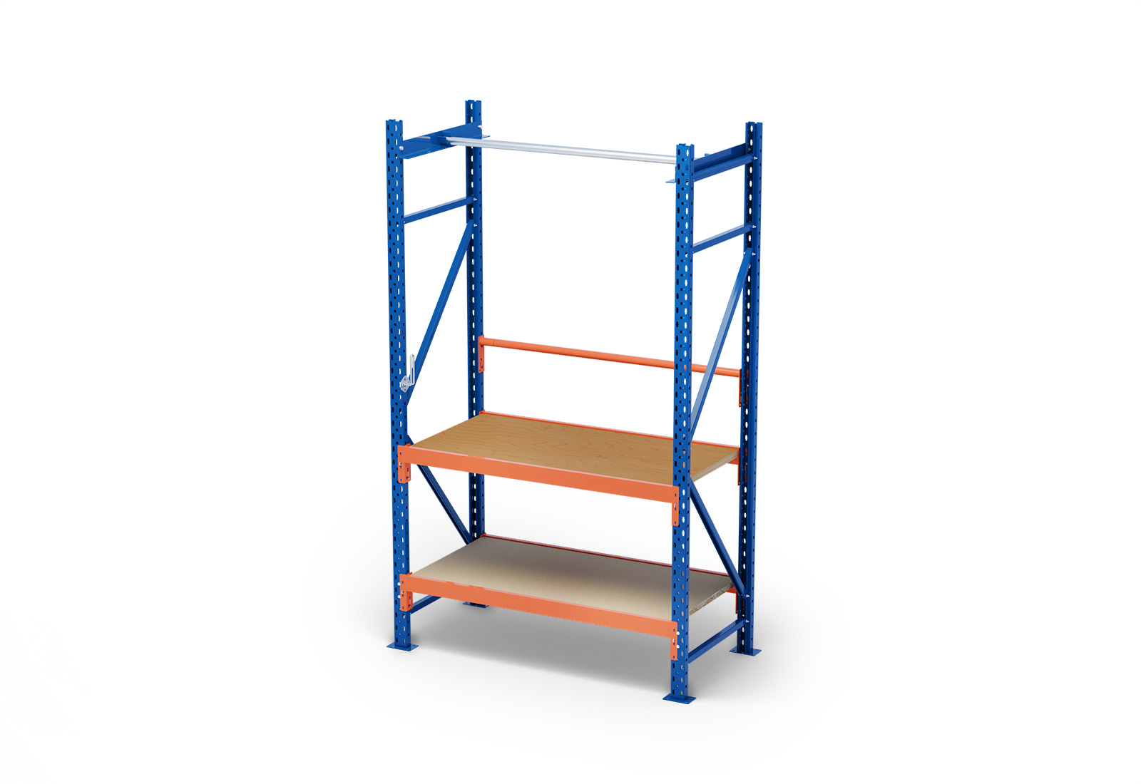 - Traversen 110 cm breit mit einer Fachlast von 500 kg inkl. Sicherungsstiften, Farbe: Orange