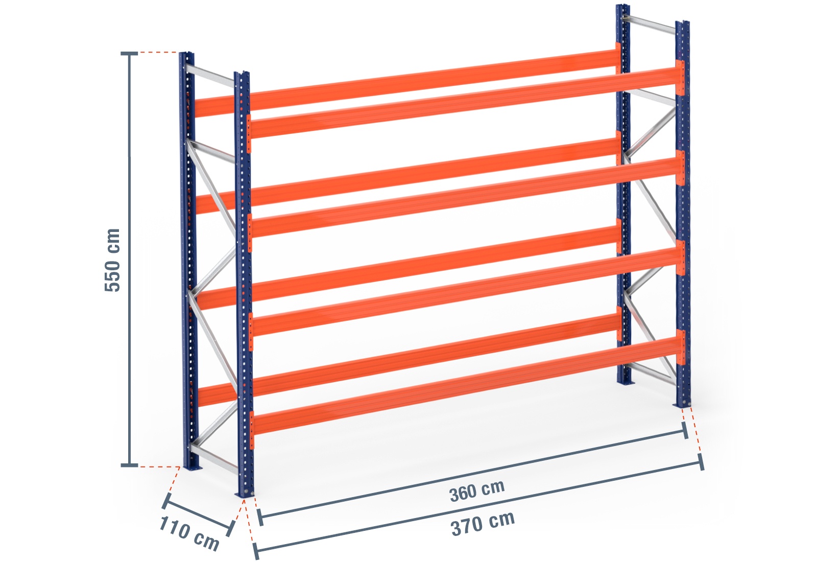 3,7 m Palettenregal PR9000 / 110 cm tief / 5,5 m hoch / 4 Ebenen für 22 Europaletten