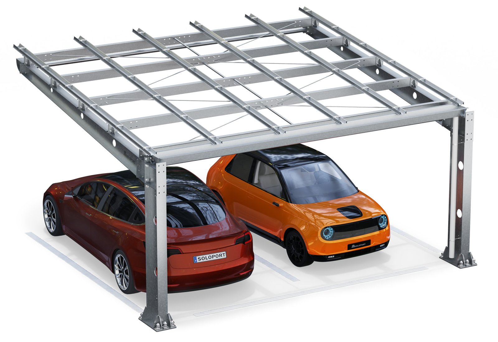 Parkplatzüberdachung PP2-G-1, einseitig, Grundfeld, SoloPort