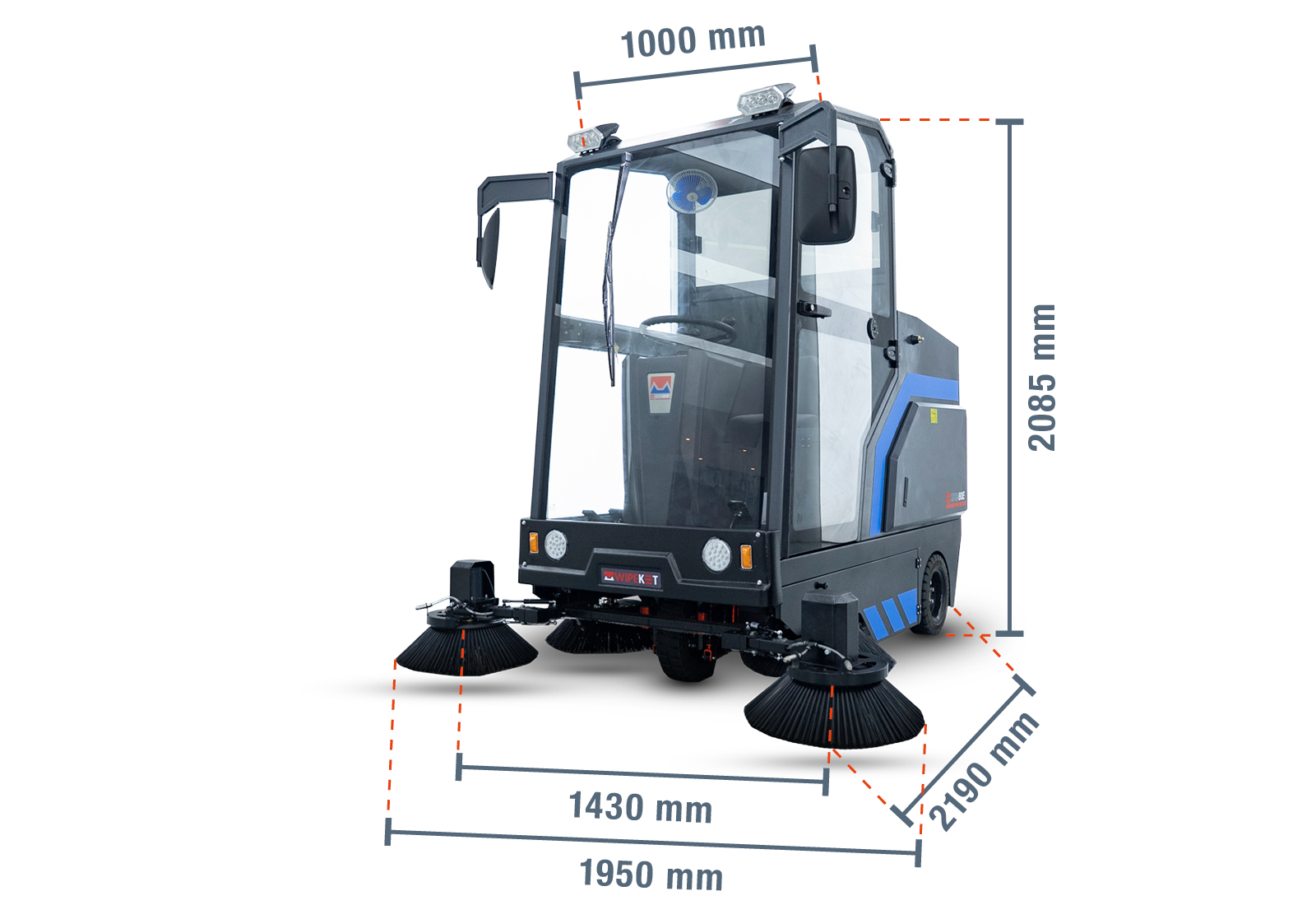 Batteriebetriebene Straßenkehrmaschine SKM80E, 15.200 m²/h, 1.950 mm x 2.190 mm x 2.085 mm, wipeket