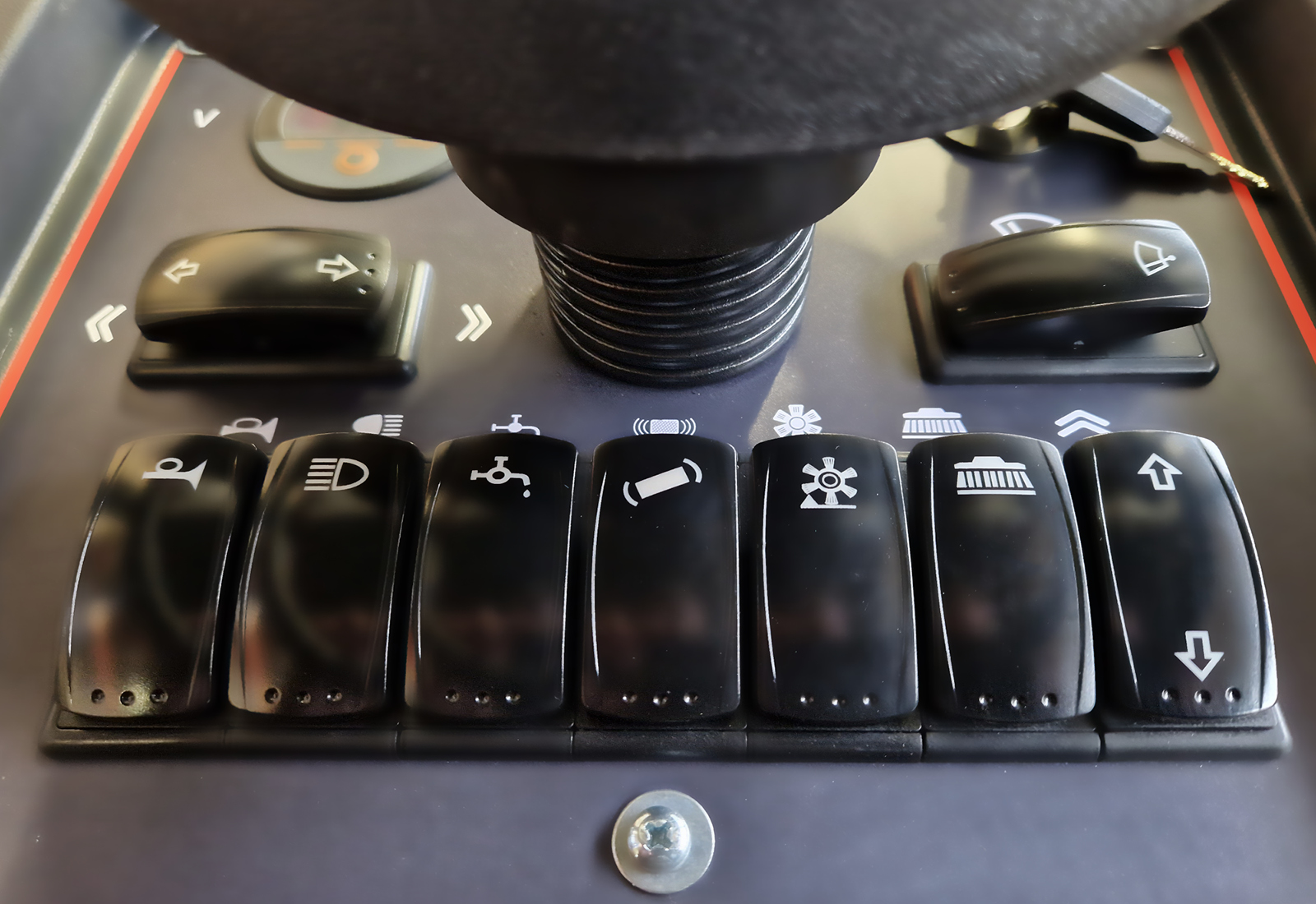 Der Wenderadius beträgt 1.000 mm, was eine hohe Manövrierfähigkeit ermöglicht. Die robuste Straßenkehrmaschine mit einem Gesamtgewicht von 780 kg ist dank der Frischwasserkapazität von 80 l auch für lange Einsätze geeignet. Die einstellbaren Wasserdüsen verhindern Staubaufwirbelungen, was nicht nur die Reinigungseffizienz steigert, sondern auch die Umwelt schont.