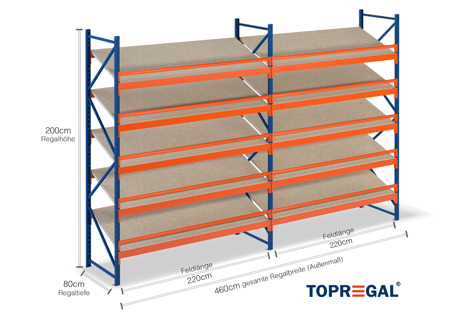 - 10 x Regalboden 220 cm x 80 cm, 25 mm stark