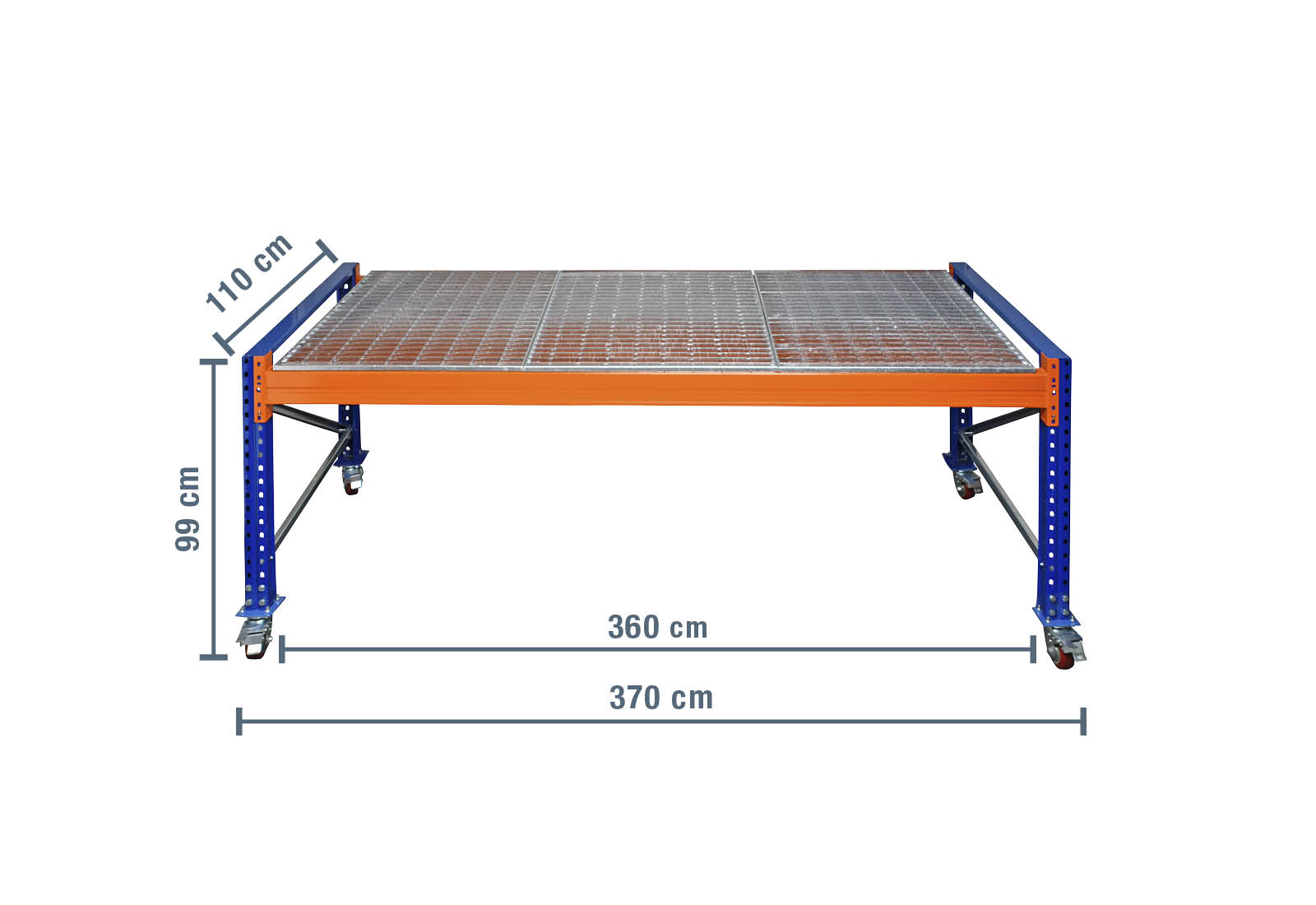 - 1 x Palettenregal Gitterrost, 360 cm x 110 cm (4 Module pro Ebene)