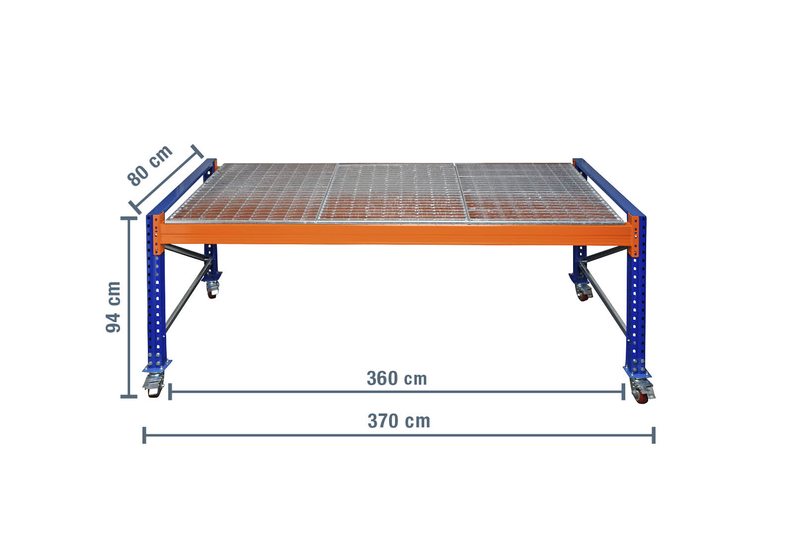 - 1 x Palettenregal Gitterrost, 360 cm x 80 cm (4 Module pro Ebene)