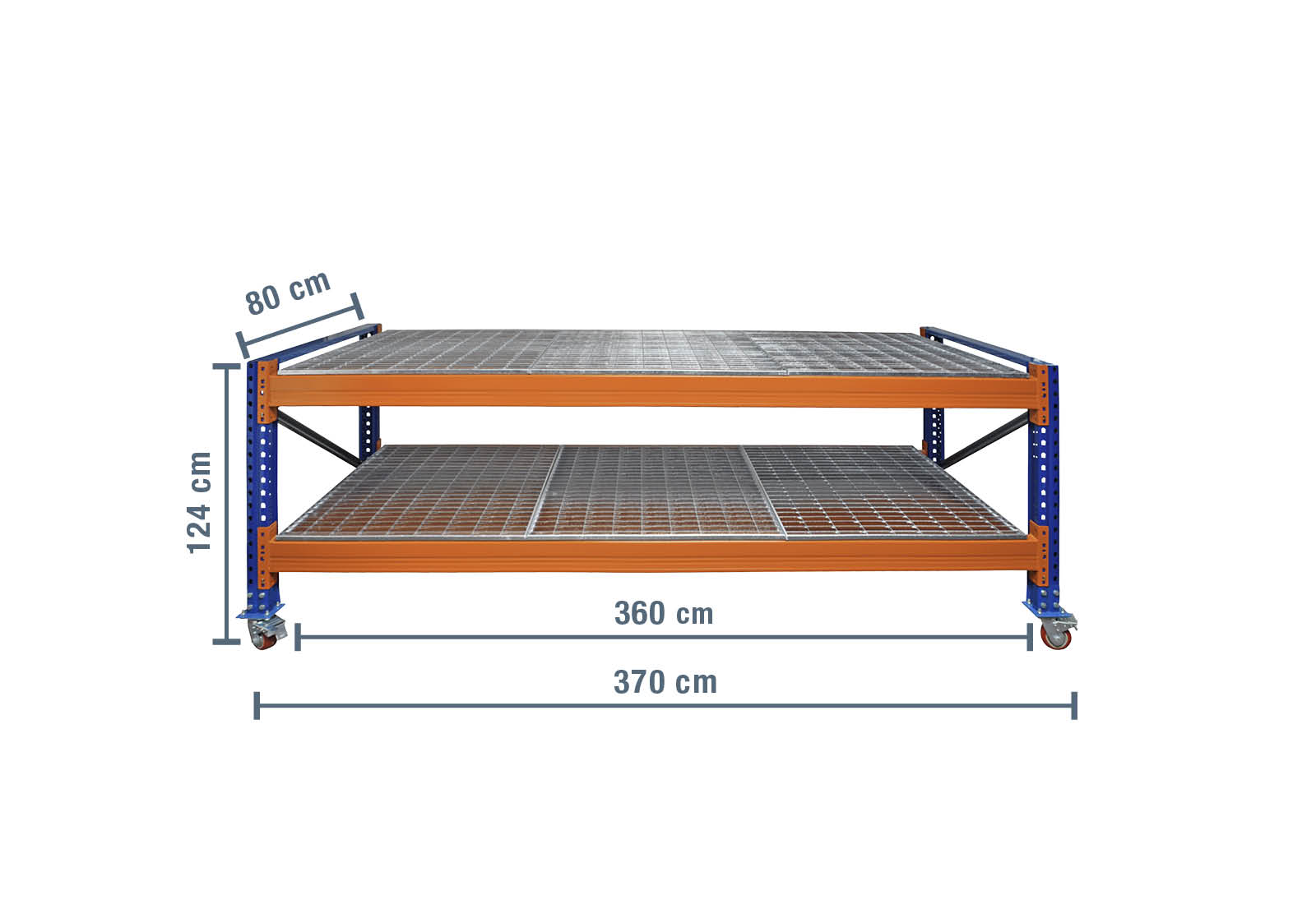 - 2 x Palettenregal Gitterrost, 360 cm x 80 cm (4 Module pro Ebene)