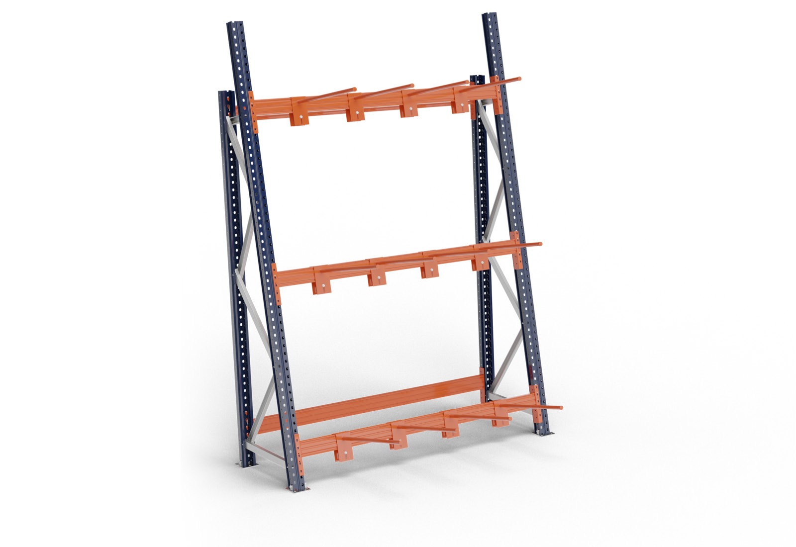 1,9 m Vertikalregal VR1500 / 3 m hoch / 80 cm tief / 3 Ebenen / 12 x Armtrenner 750 mm