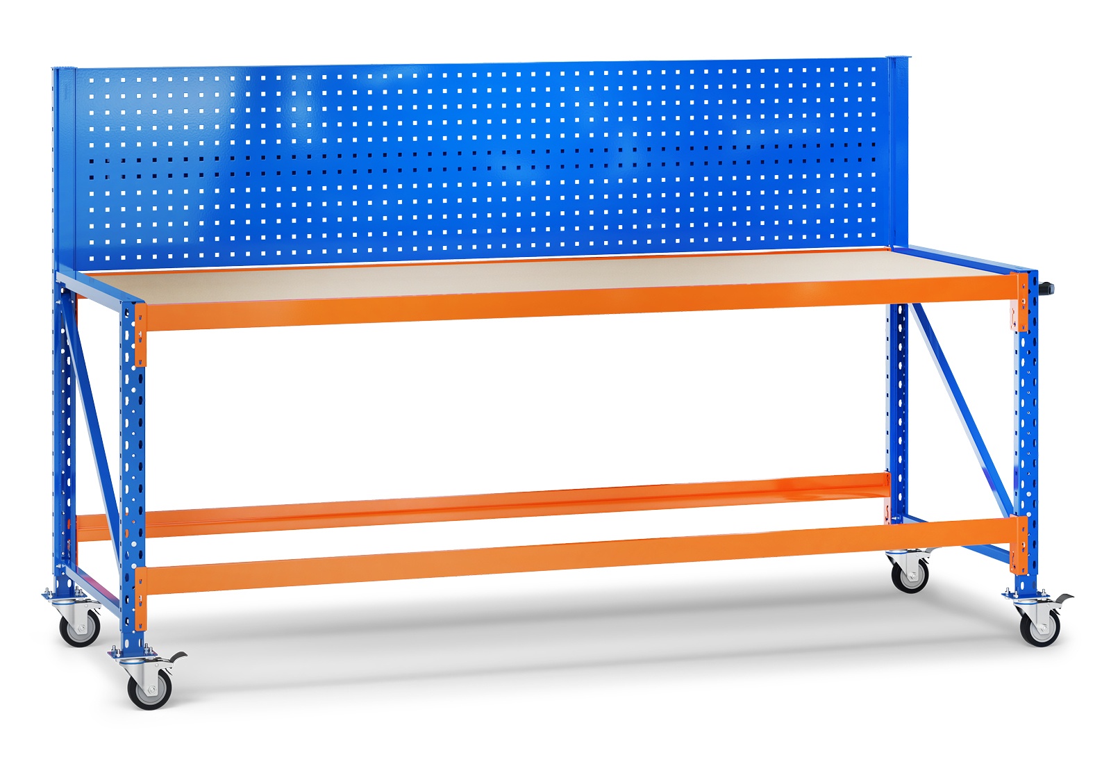 2,3 m Werkbank fahrbar MFW1000 / 80 cm tief / 890 - 1.290 mm hoch / Auflage Holz / Lochrückwand
