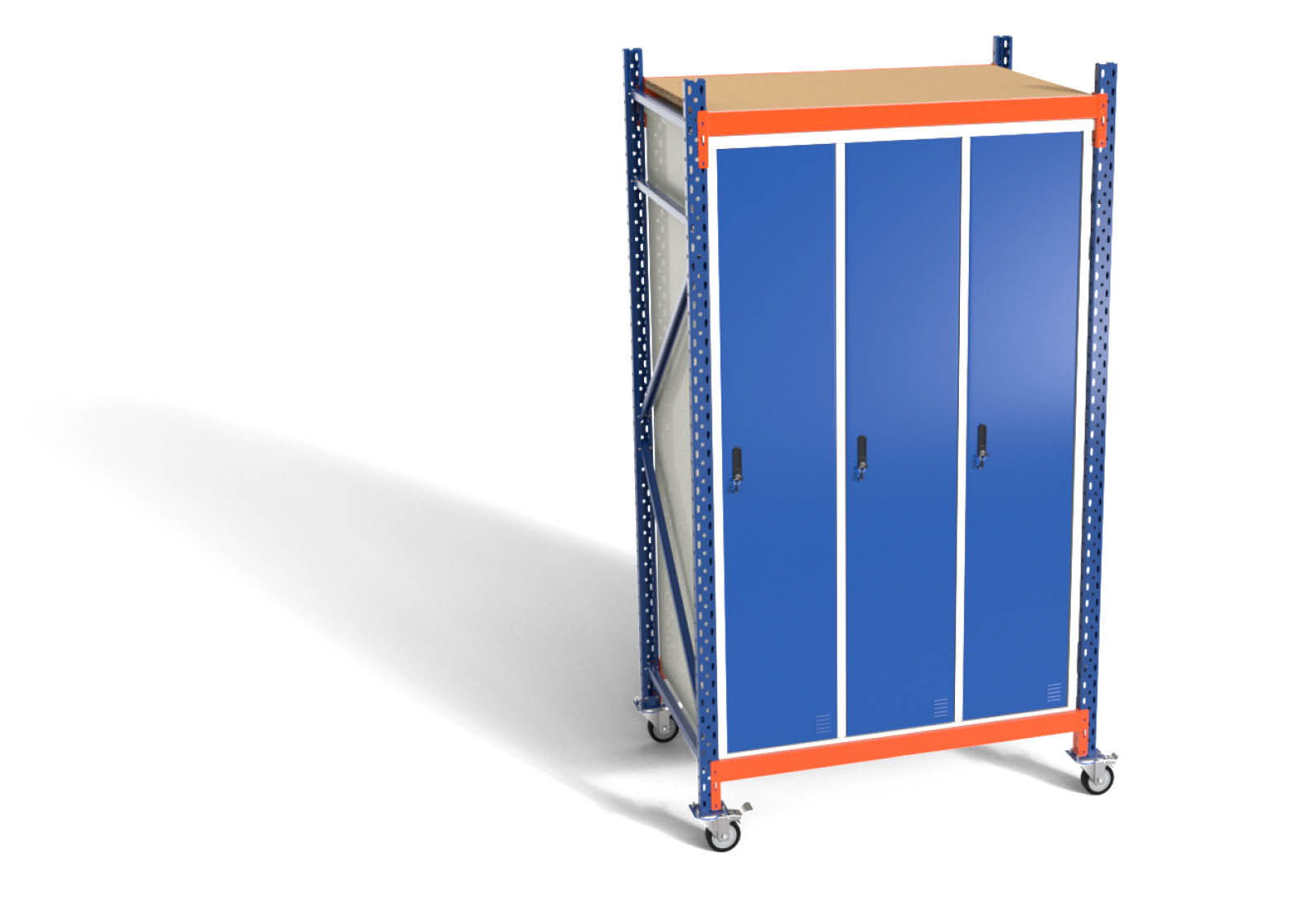 Fahrbarer Spind auf Basis 1.200 mm Lagerregal, 2.140 mm hoch, 800 mm tief