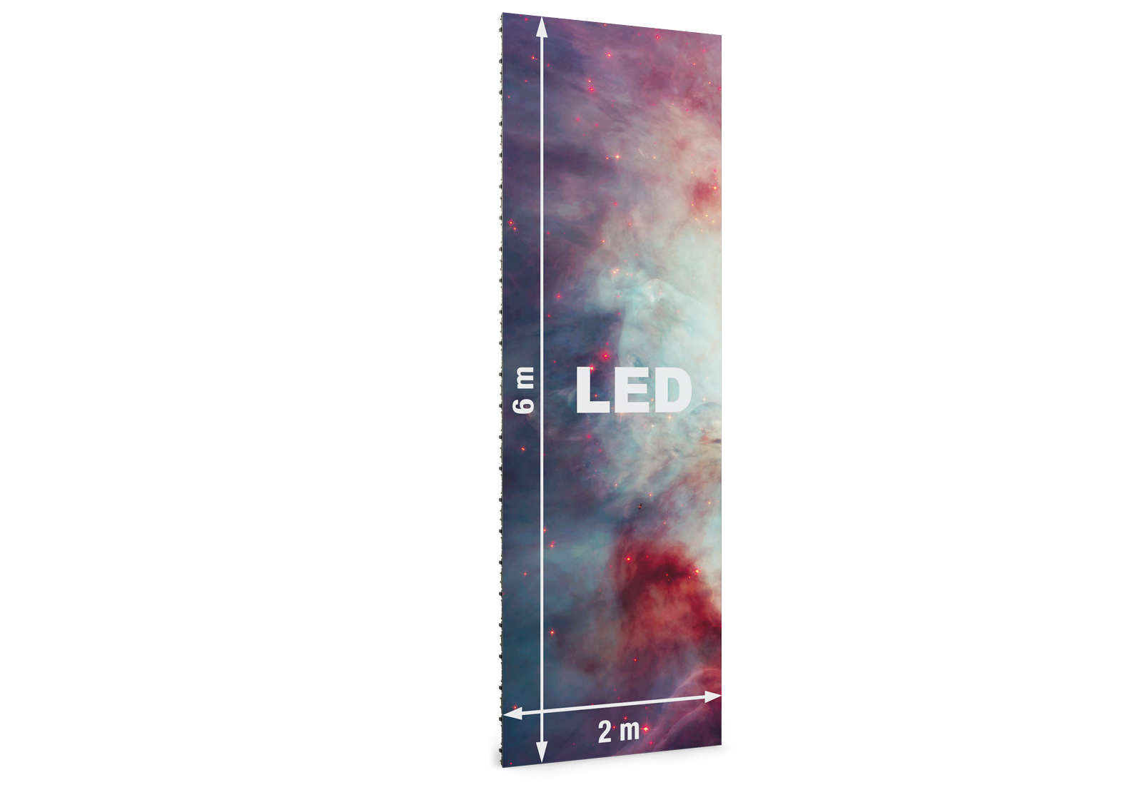 The complete LED video wall package, consisting of 48 modules with a total length of 2 m and a height of 6 m, also includes everything you need to get started. With the Novastar Box, you can display content from your computer on the video wall quickly and easily. The LED wall can also be mounted in a curved configuration. With a maximum external mounting angle of 10° and a maximum internal mounting angle of 15°, you have plenty of design freedom.