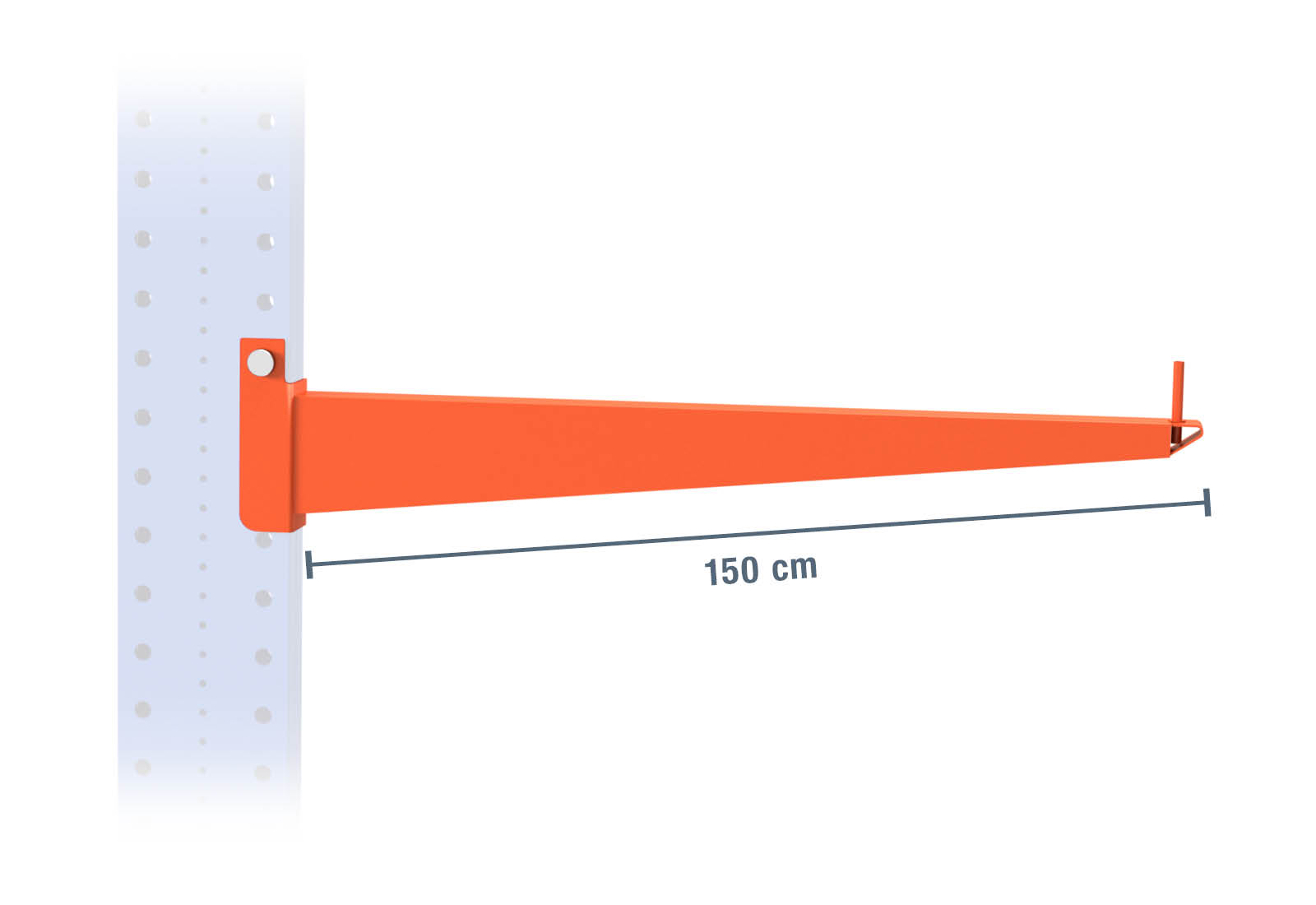 This arm is powder-coated in the signal colour of orange and has a maximum load capacity of 1.000 kg. This makes it particularly suitable for use in dry indoor areas, such as warehouses. In order to assemble a fully functional rack, this cantilever must be attached to the uprights of the rack using the accessories supplied.
