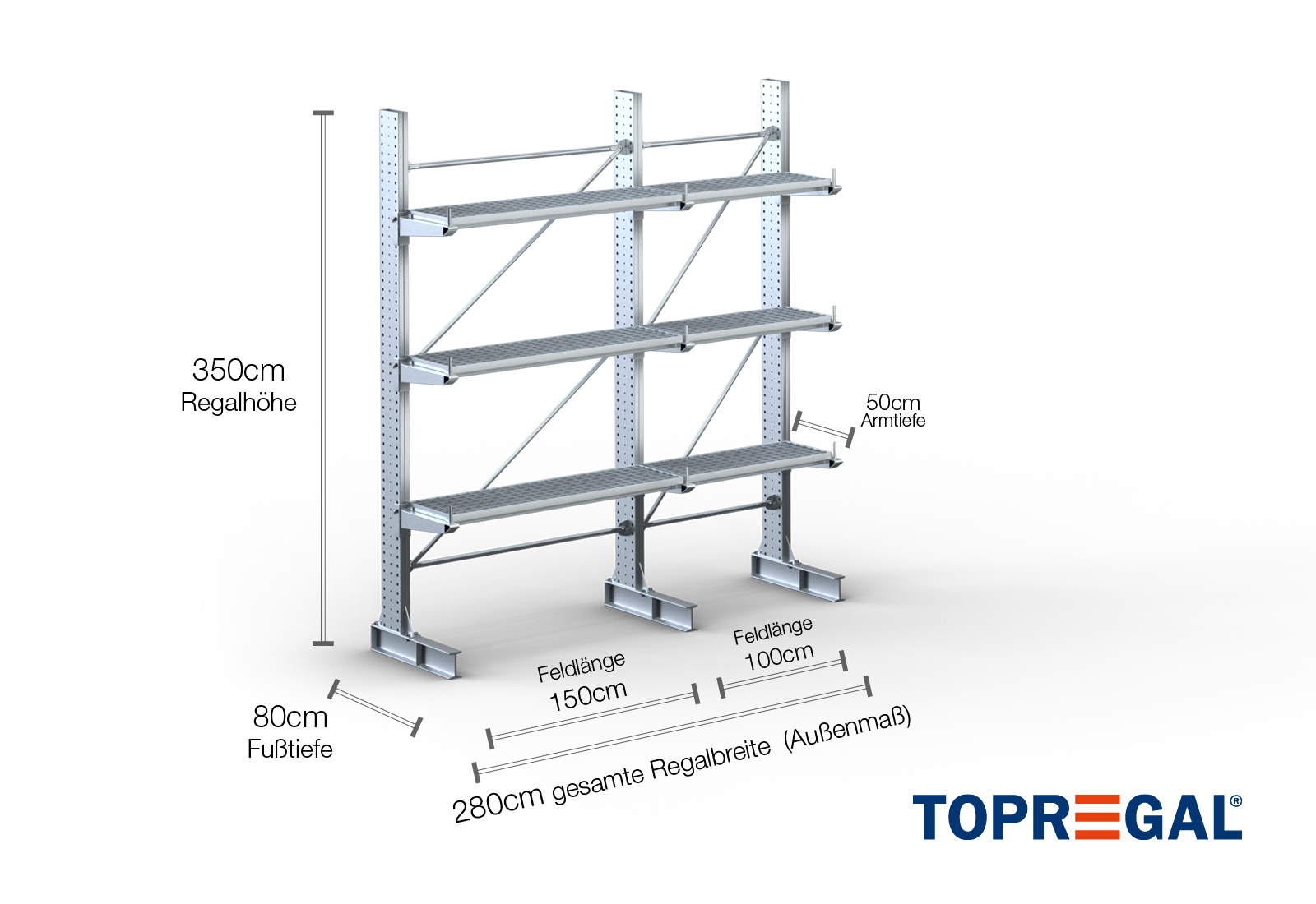 • 1 x cantilever rack unit (strutting) for 3,5 m height, axial dimension 1 m (type: KR3000 galvanised)