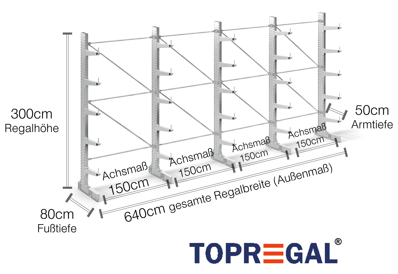 The axial dimension is the internal dimension between two shelf uprights. Depending on the cantilever type, we offer these fields in 120 cm (KR2500) and in 100 cm / 150 cm (KR3000 / KR6000).