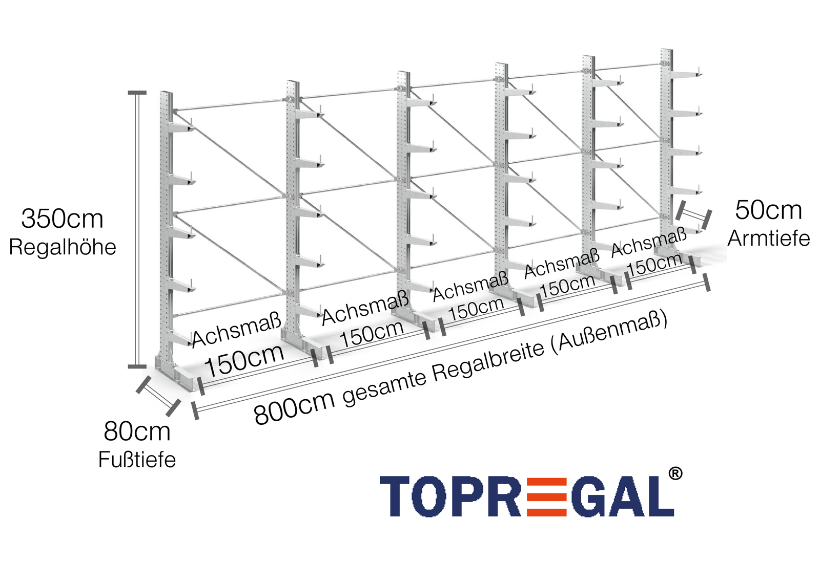 The axial dimension is the internal dimension between two shelf uprights. Depending on the cantilever type, we offer these fields in 120 cm (KR2500) and in 100 cm / 150 cm (KR3000 / KR6000).