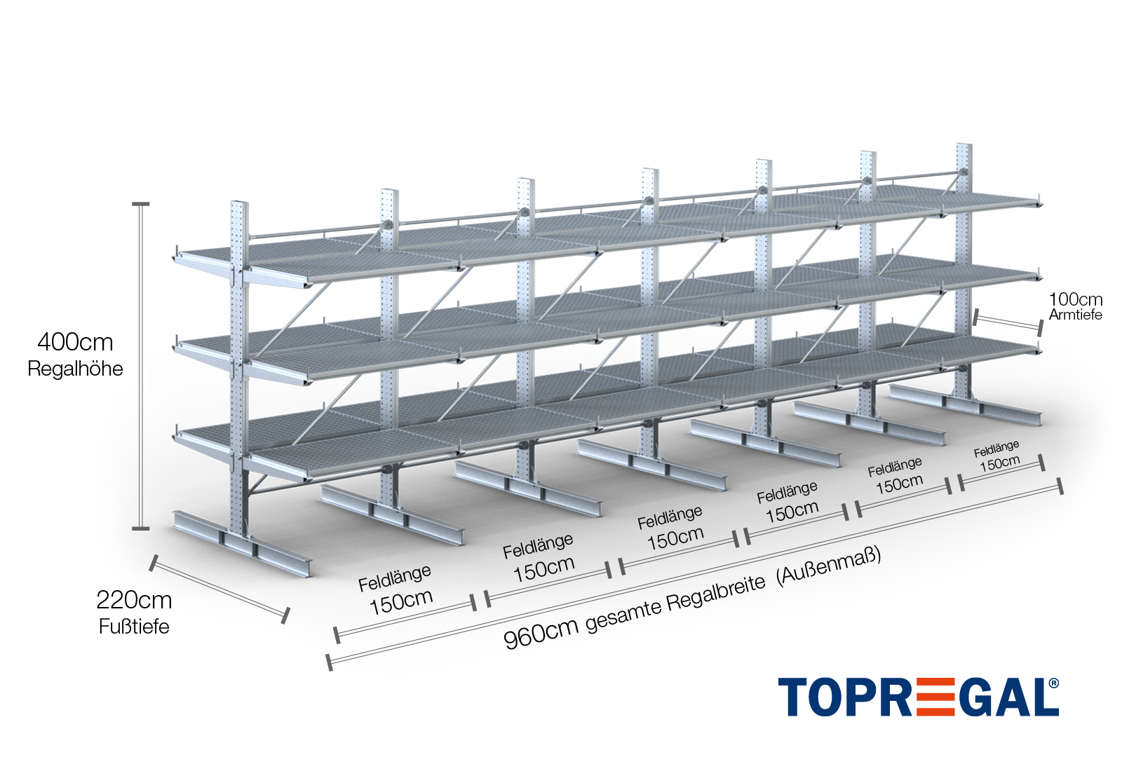 The TOPREGAL cantilever racks KR3000 feature a particularly robust, modular and flexible design.