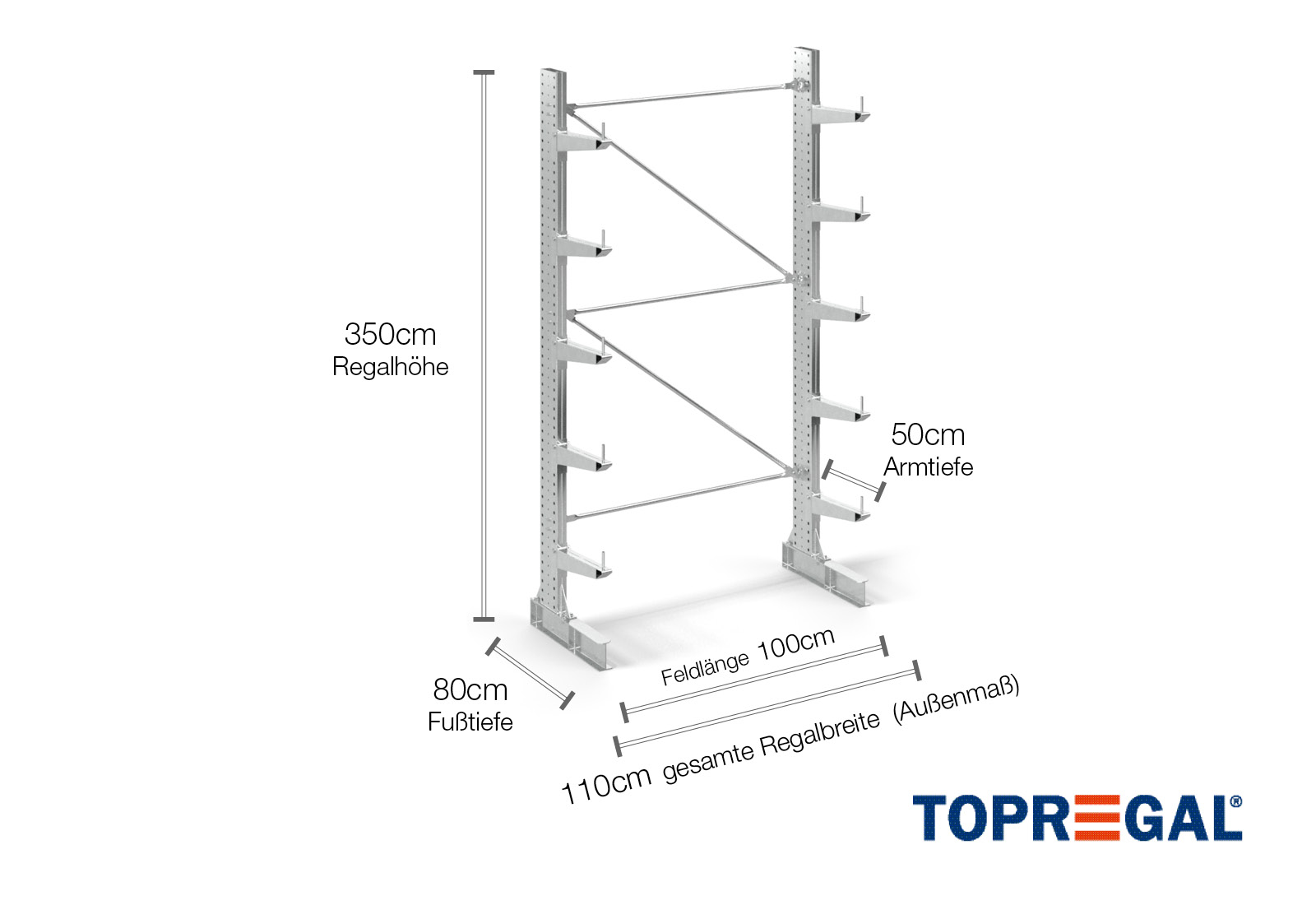 - 1 x cantilever rack unit (strutting) for 3,5 m height, axial dimension 1 m (type: KR3000 galvanised)