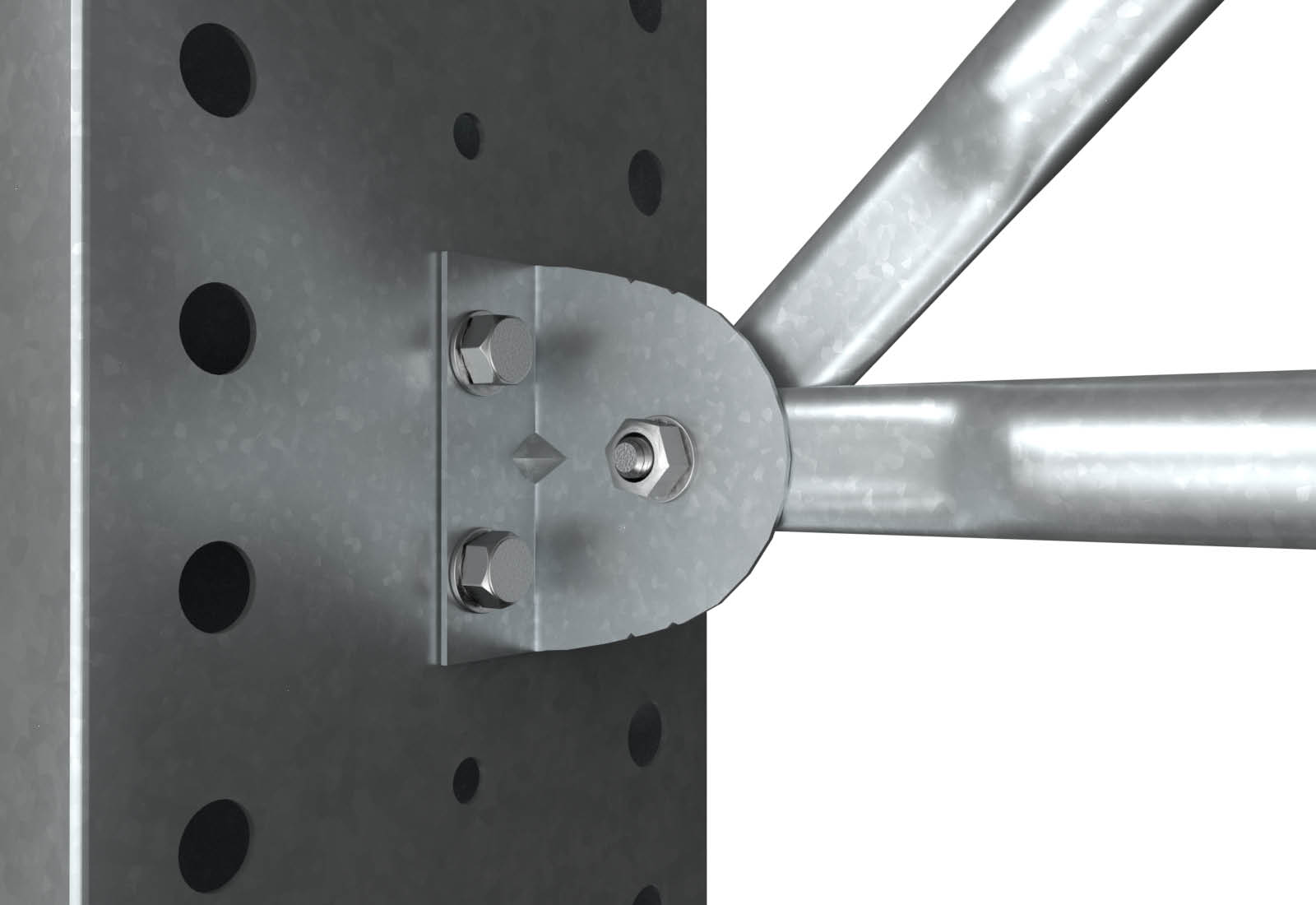 The individual cross and diagonal braces are mounted to the bracket of the shelf uprights with the corresponding hexagon bolts, hexagon nuts and washers.