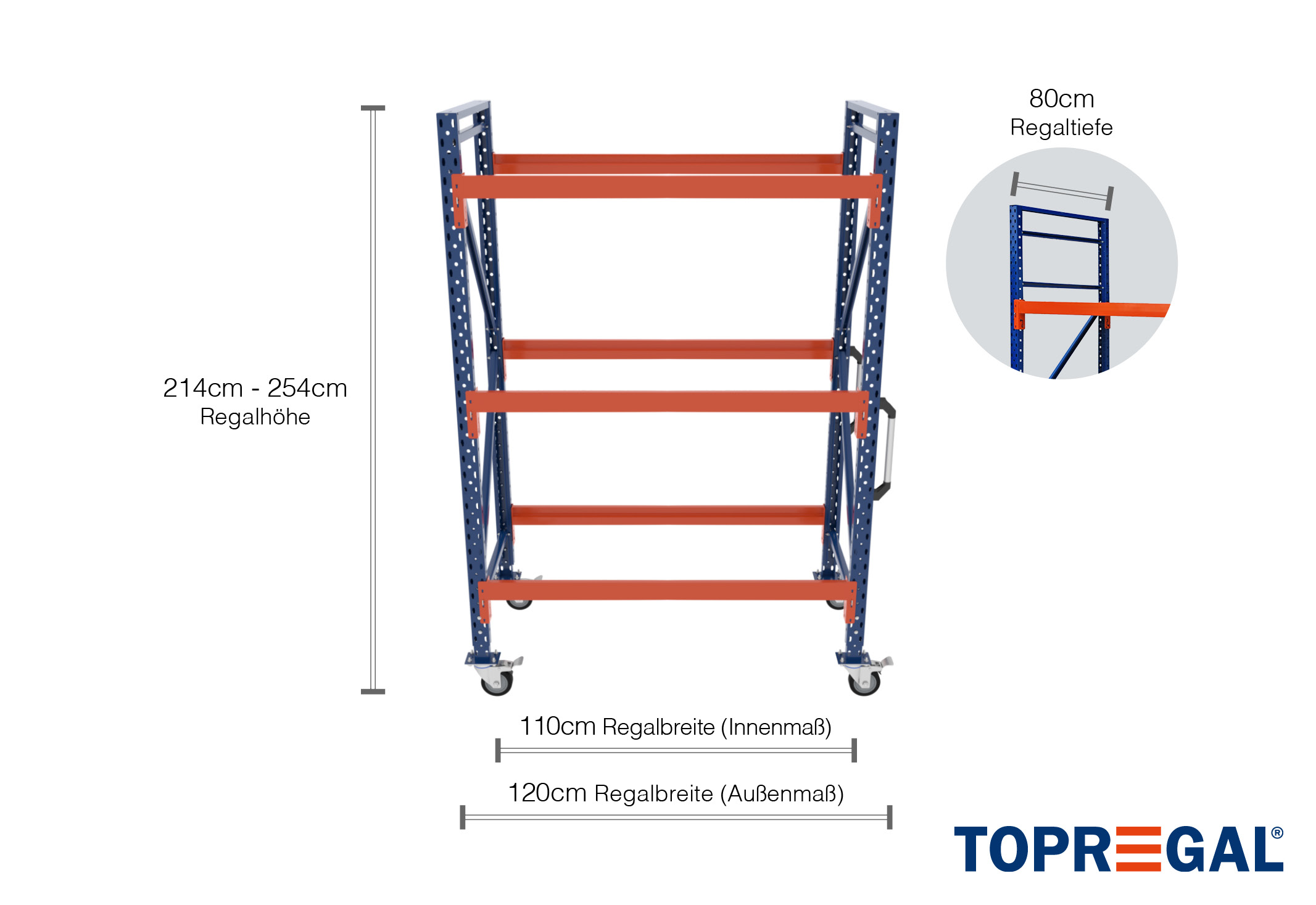 1,2 m mobile individual rack IR2000 / 2.140 - 2.540 mm high / 80 cm deep / 3 levels