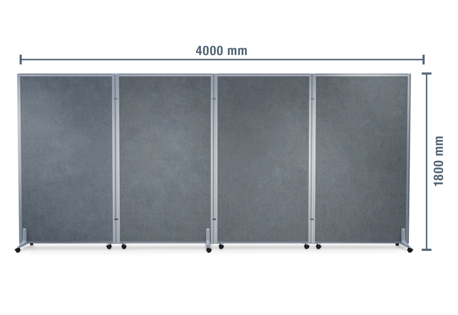 4 m room divider partition wall system, grey mottled, mobile, 1.800 mm tall