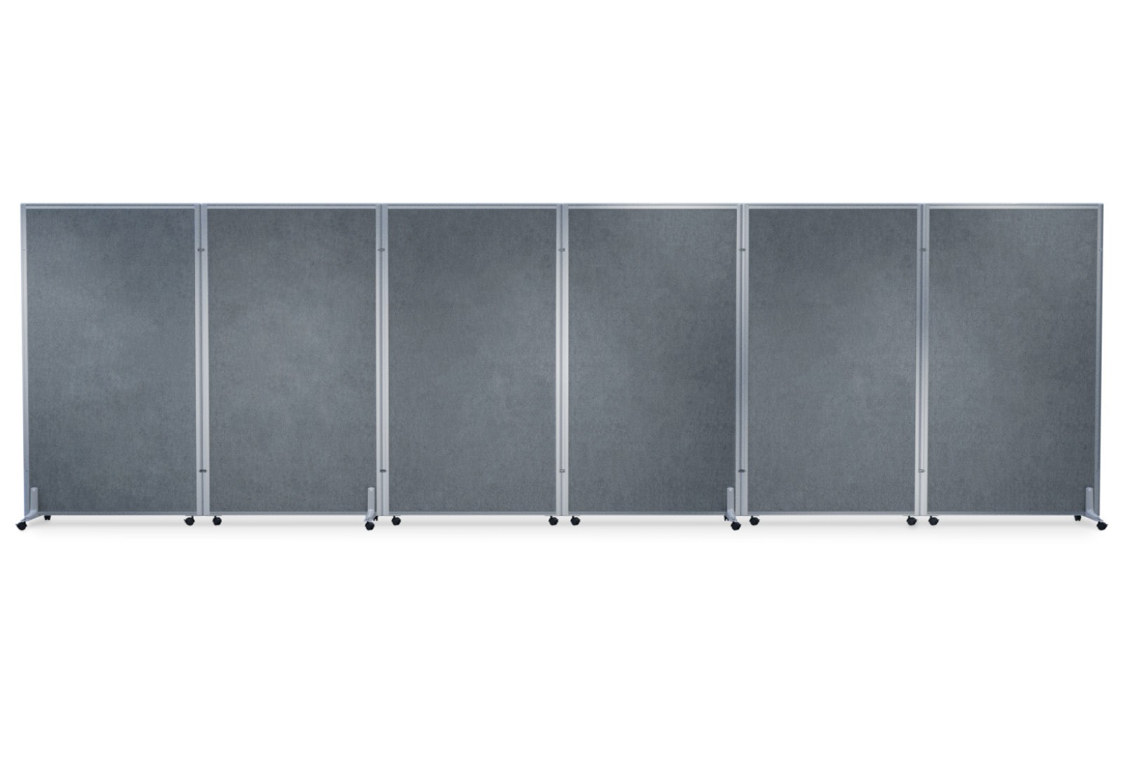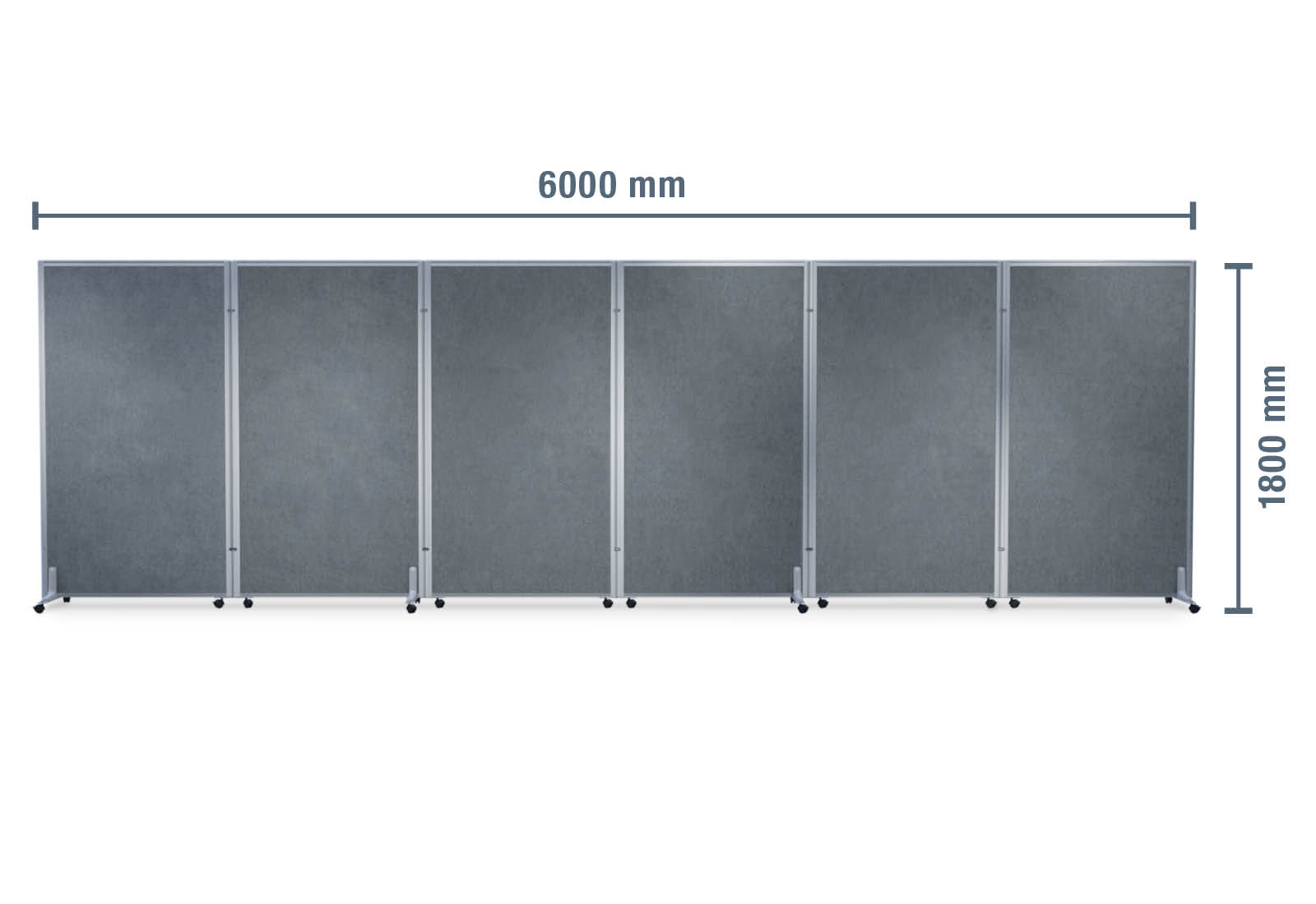 6 m room divider partition wall system, grey mottled, mobile, 1.800 mm tall