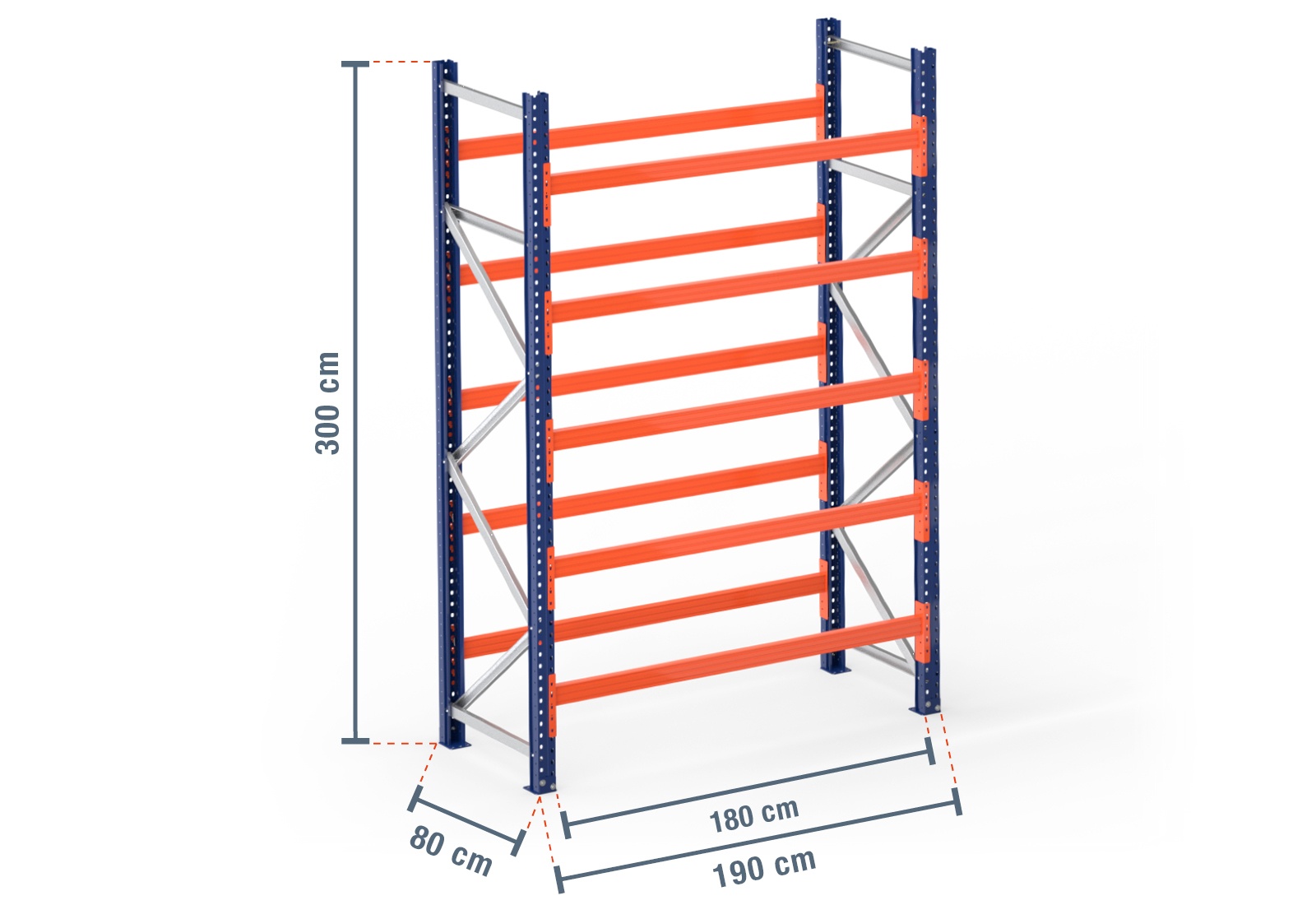 - Pallet rack PR9000 - Bay load (max.): 9000 kg / Shelf load (max.): 3000 kg