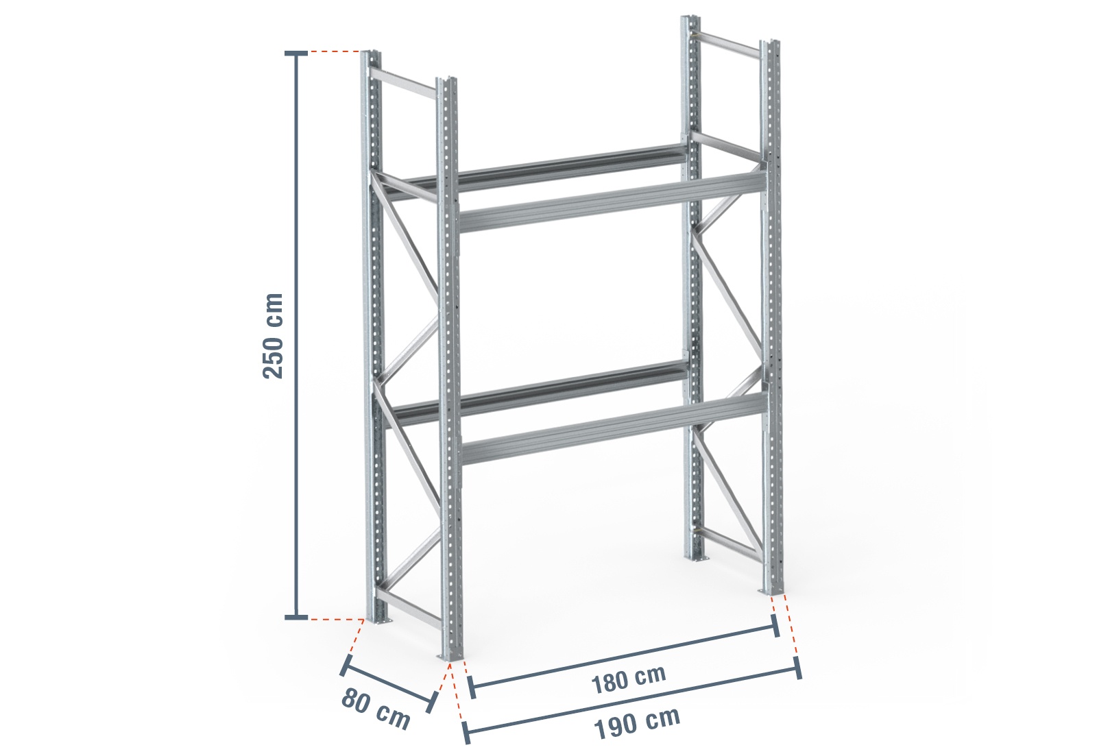1,9 m pallet rack PR9000F galvanised / 80 cm deep / 2,5 m high / 2 levels for 6 euro pallets