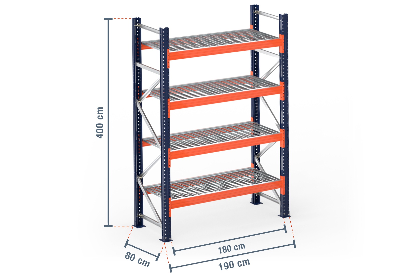 1,9 m pallet racking PR15000 / 80 cm deep / 4 m high / 4 levels / rack layer Galvanised mesh