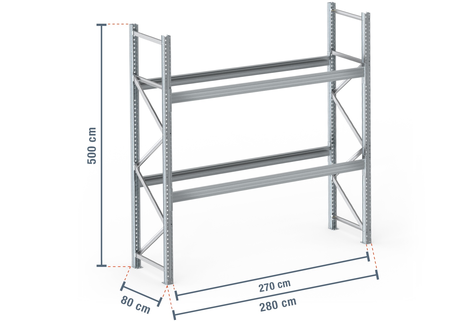 2,8 m pallet rack PR9000F galvanised / 80 cm deep / 5 m high / 2 levels for 9 euro pallets