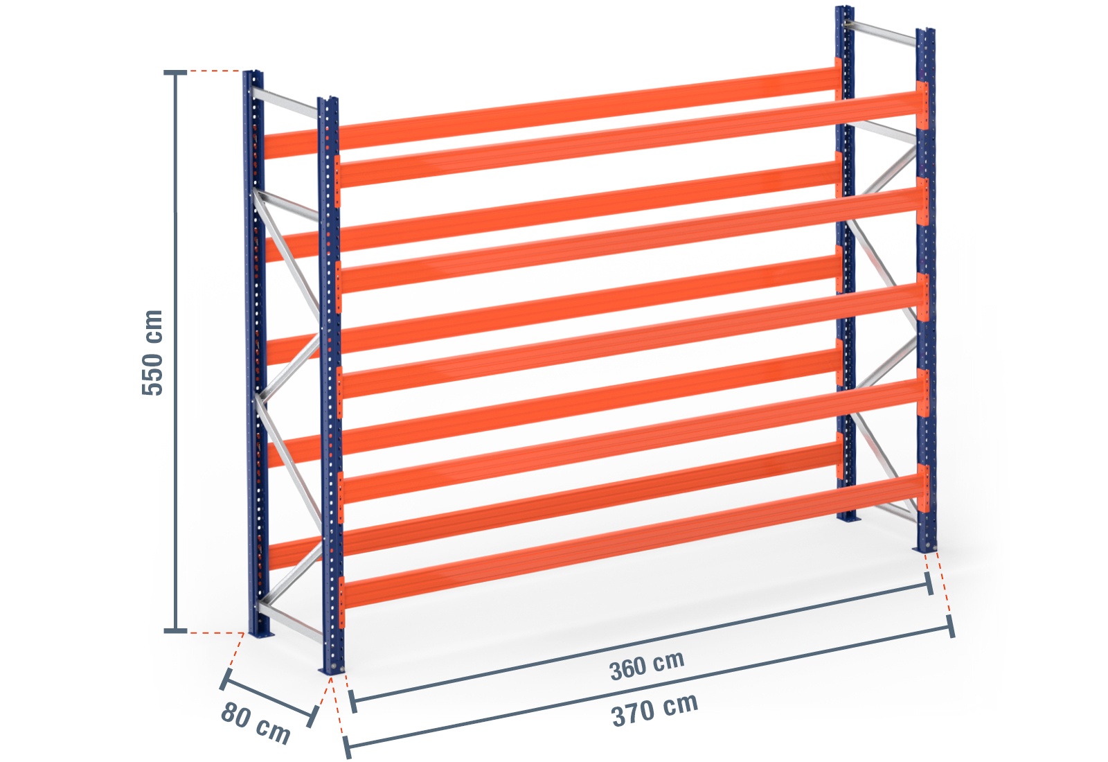 3,7 m pallet rack PR9000 / 80 cm deep / 5,5 m high / 5 levels for 26 euro pallets