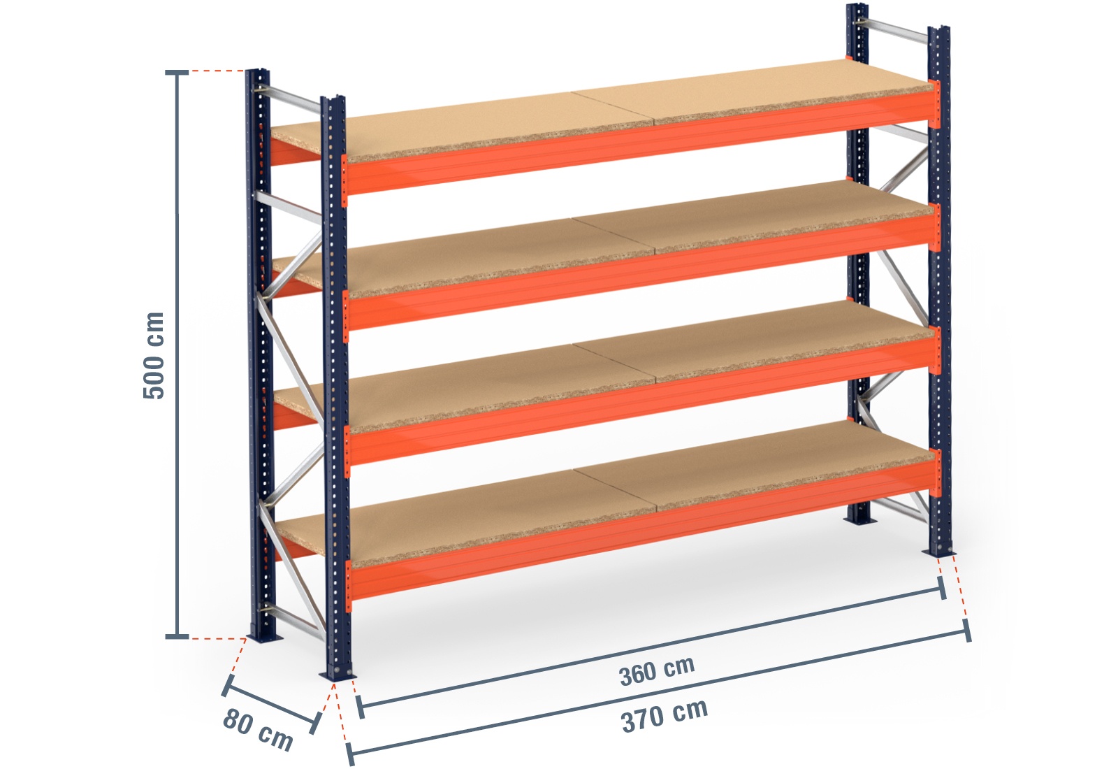 3,7 m pallet racking PR15000 / 80 cm deep / 5 m high / 4 levels / rack layer Wood