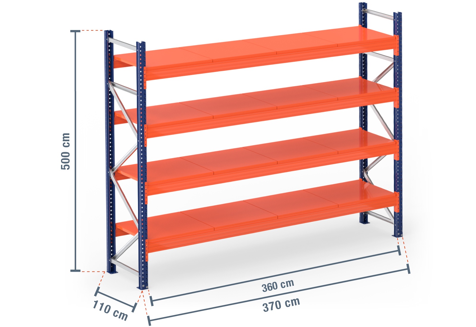 3,7 m pallet racking PR4500 / 110 cm deep / 5 m high / 4 levels / rack layer Steel